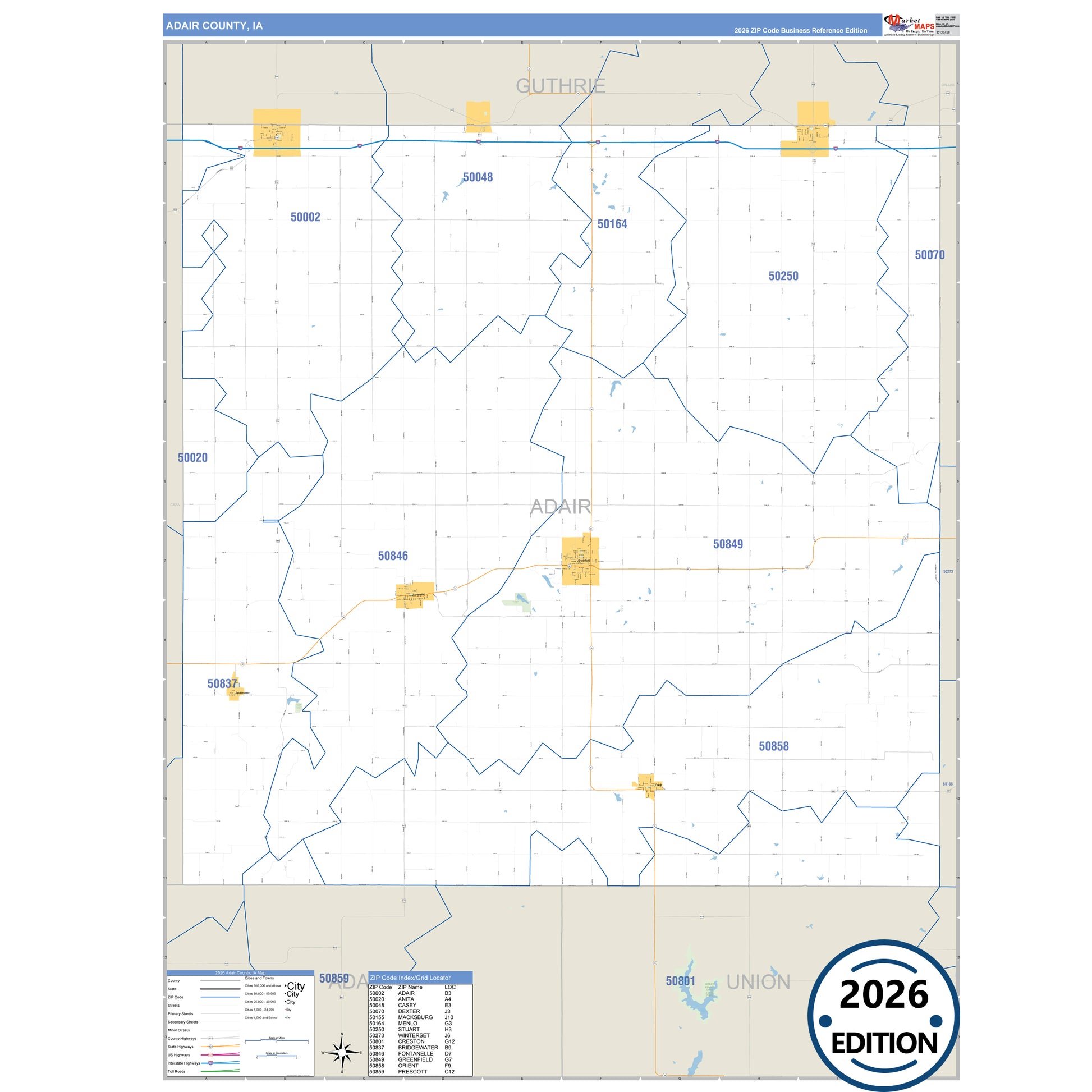 The Business Reference Style Adair County, IA is a detailed map that includes all towns, cities, major roadways, and highways. Available in multiple wall map sizes, perfect for home, school, office, or business display.