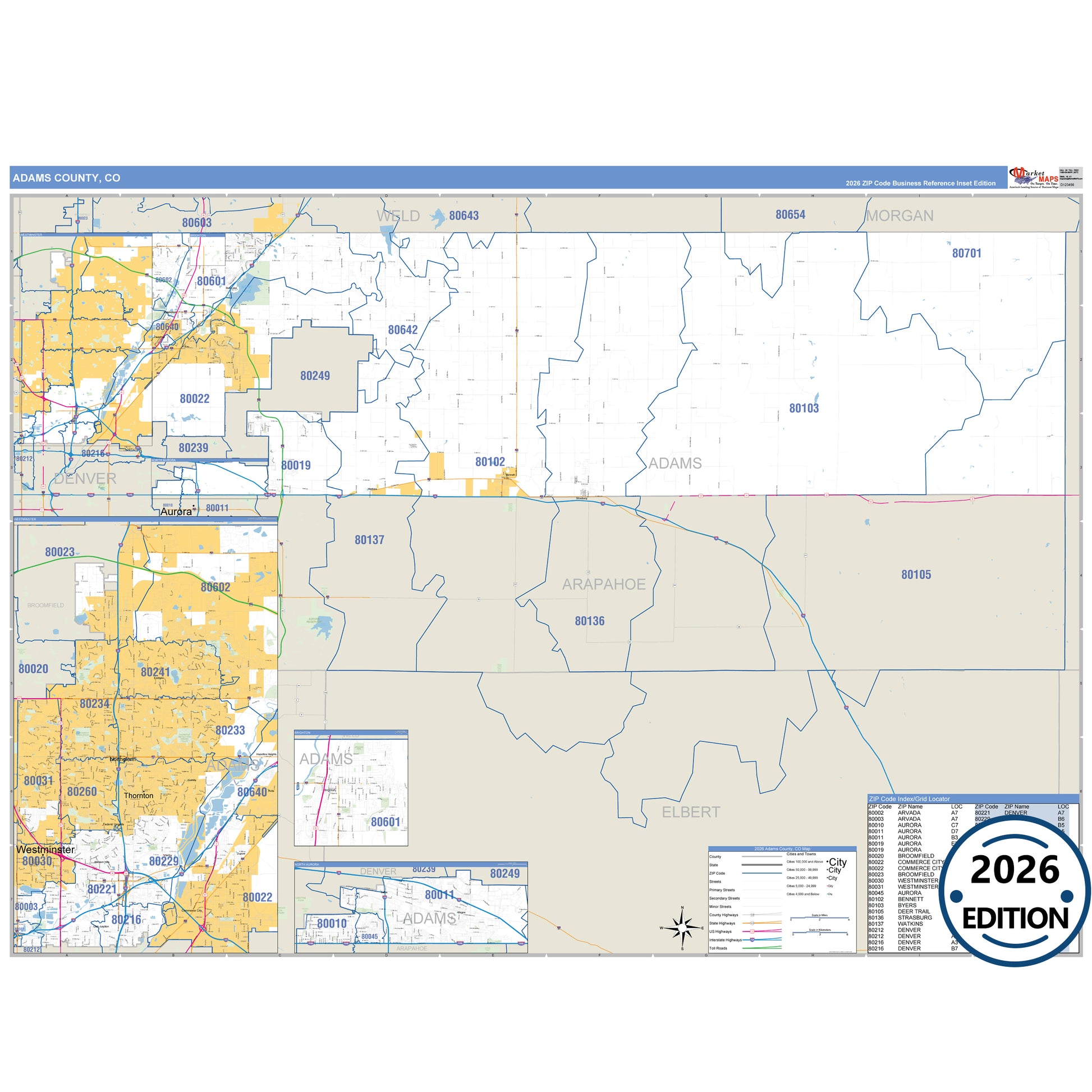 The Business Reference Style Adams County, CO is a detailed map that includes all towns, cities, major roadways, and highways. Available in multiple wall map sizes, perfect for home, school, office, or business display.