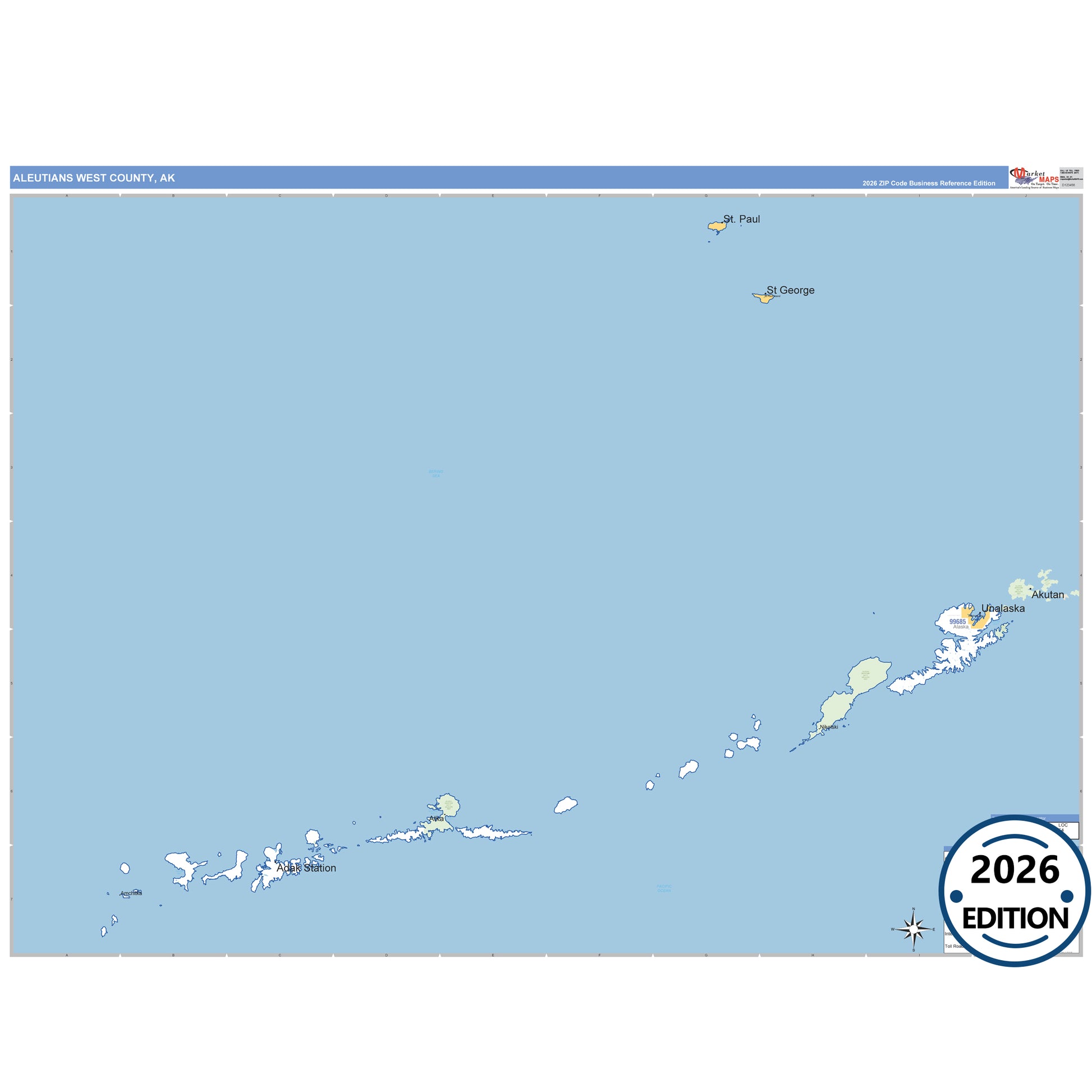 The Business Reference Style Aleutians West County, AK is a detailed map that includes all towns, cities, major roadways, and highways. Available in multiple wall map sizes, perfect for home, school, office, or business display.