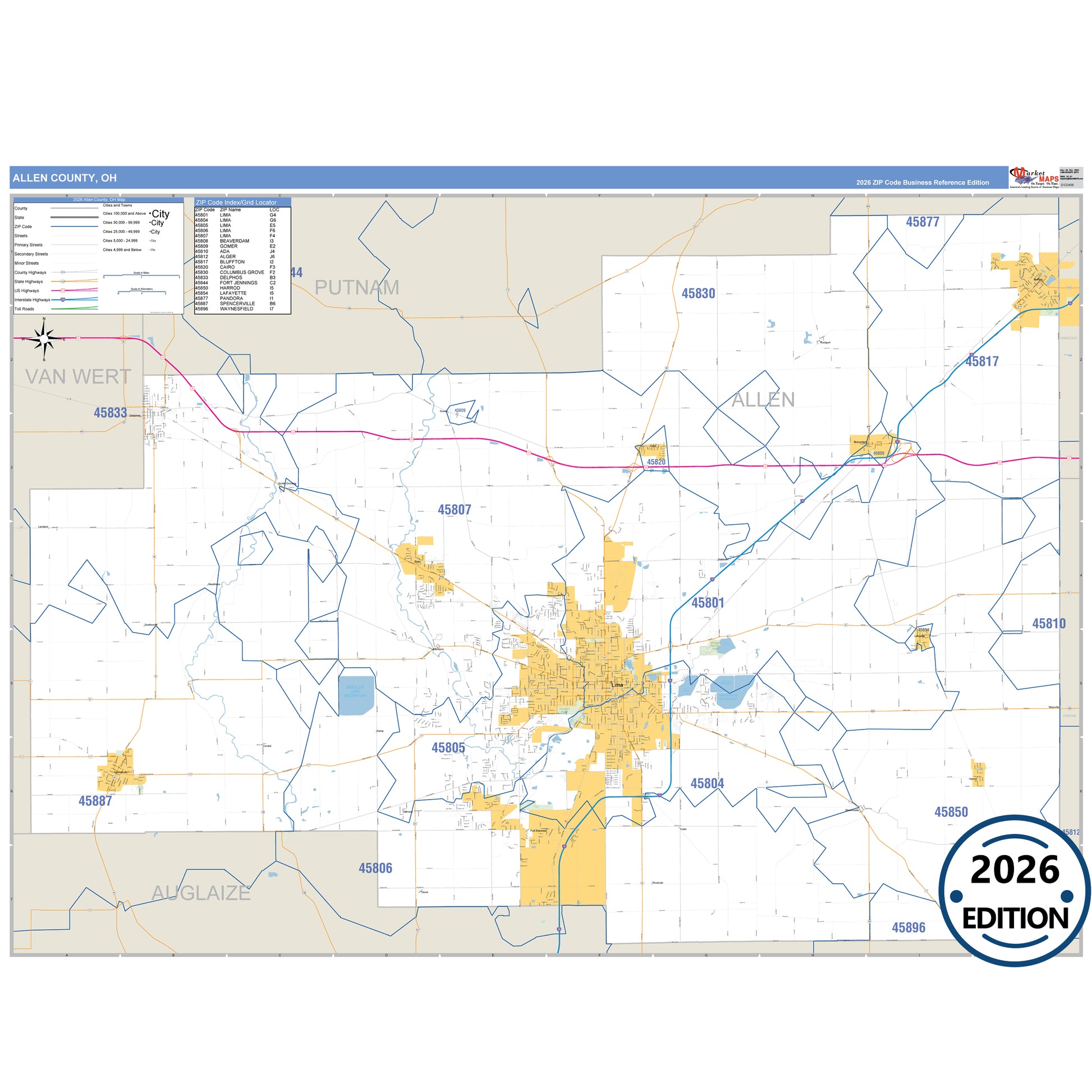 The Business Reference Style Allen County, OH is a detailed map that includes all towns, cities, major roadways, and highways. Available in multiple wall map sizes, perfect for home, school, office, or business display.