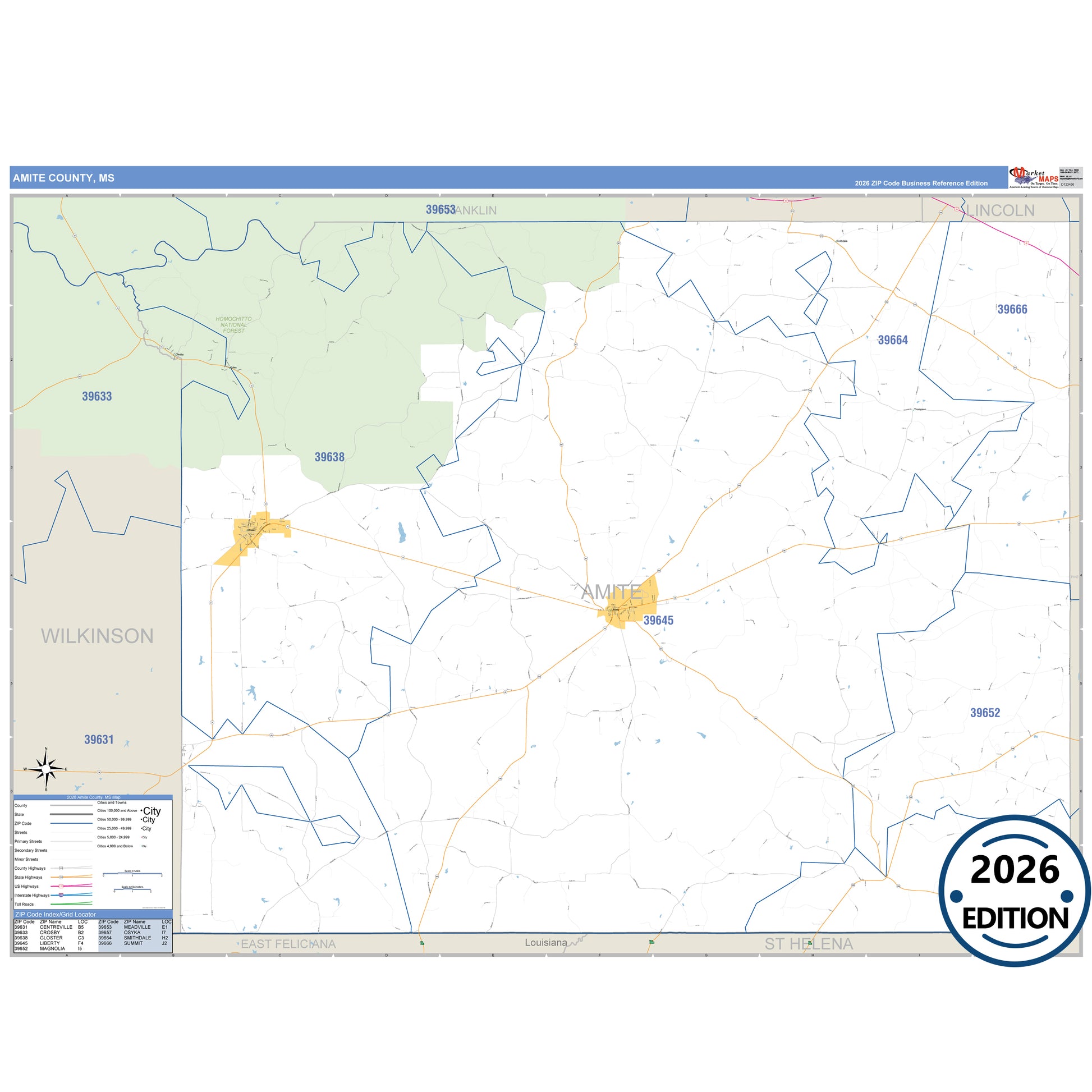The Business Reference Style Amite County, MS is a detailed map that includes all towns, cities, major roadways, and highways. Available in multiple wall map sizes, perfect for home, school, office, or business display.