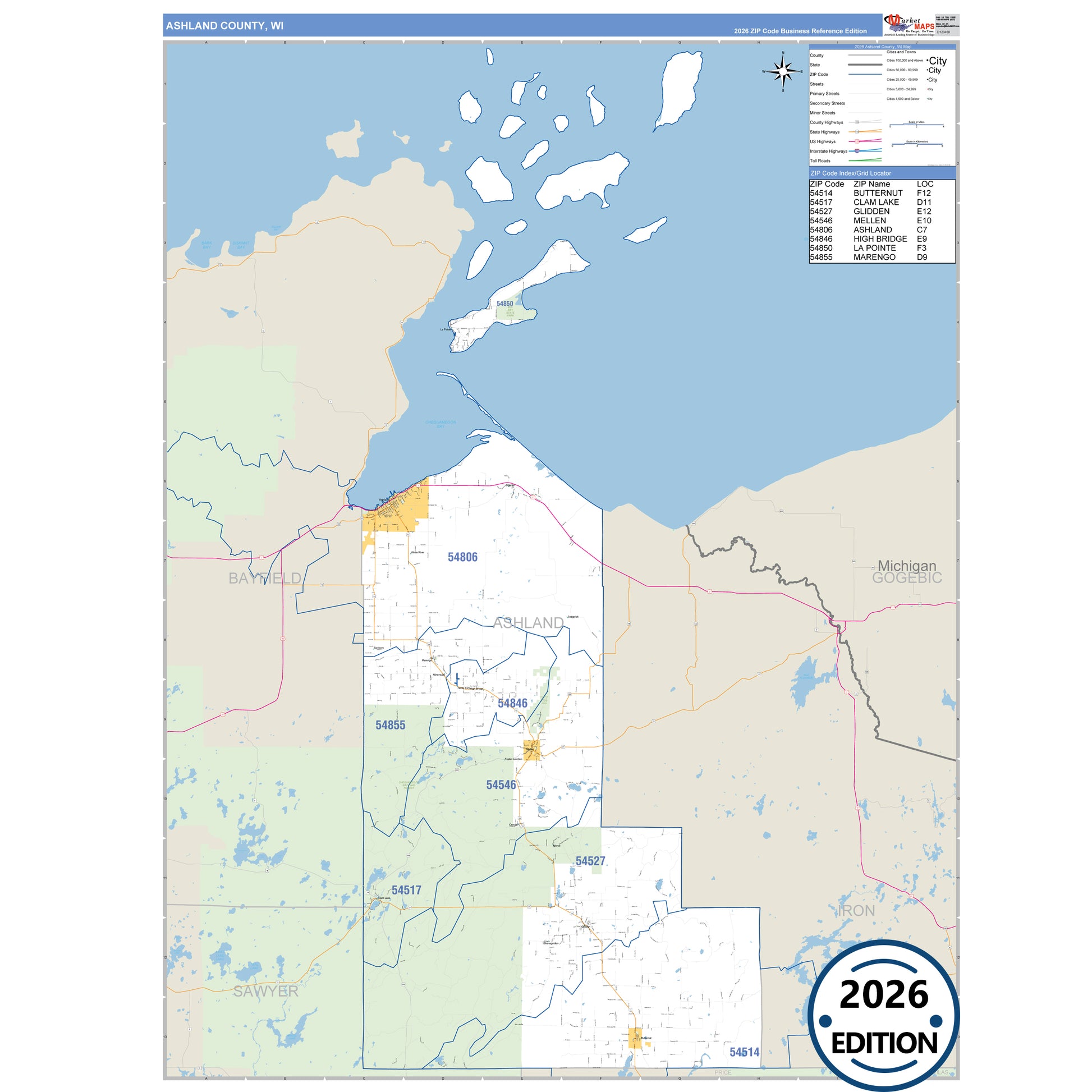 The Business Reference Style Ashland County, WI is a detailed map that includes all towns, cities, major roadways, and highways. Available in multiple wall map sizes, perfect for home, school, office, or business display.