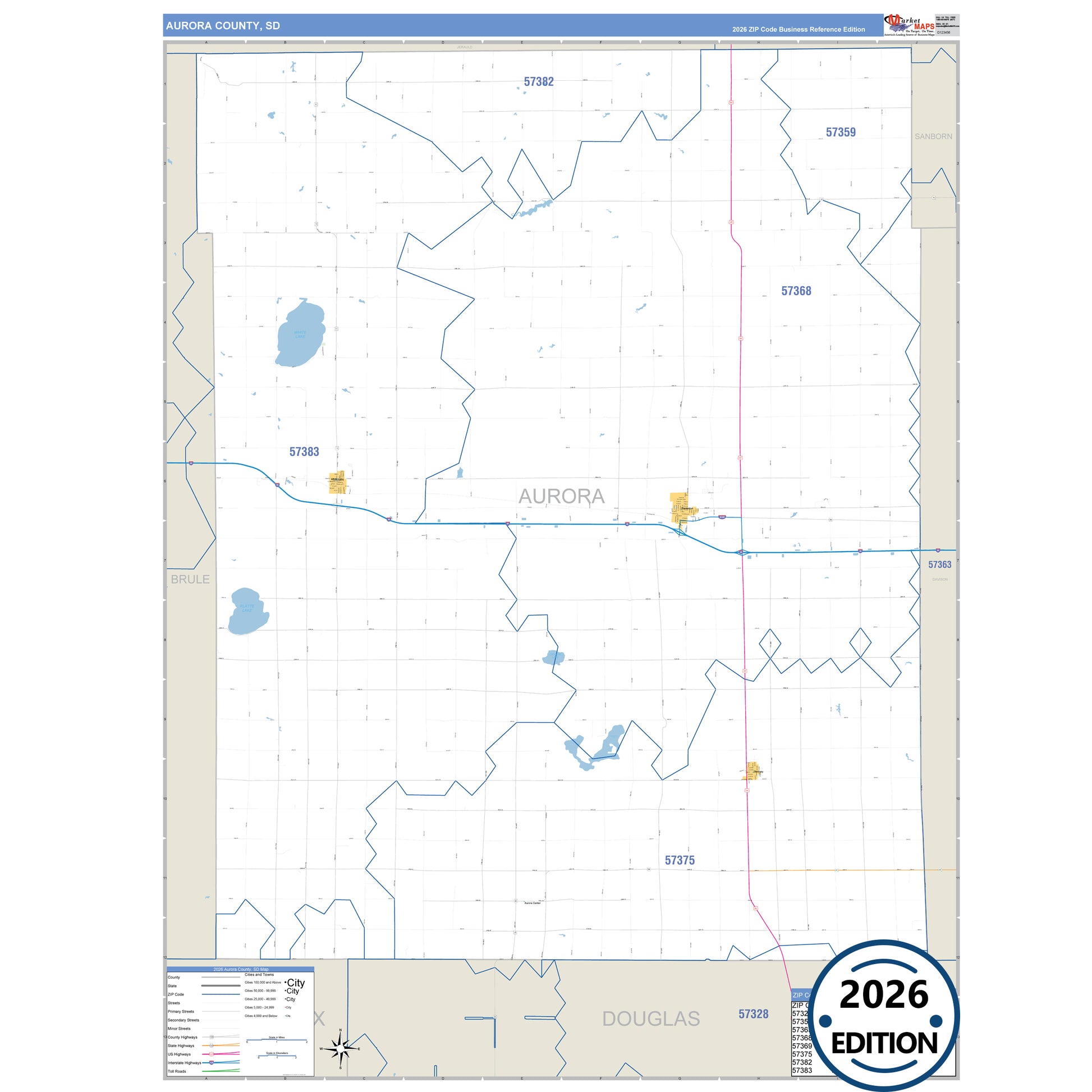 The Business Reference Style Aurora County, SD is a detailed map that includes all towns, cities, major roadways, and highways. Available in multiple wall map sizes, perfect for home, school, office, or business display.