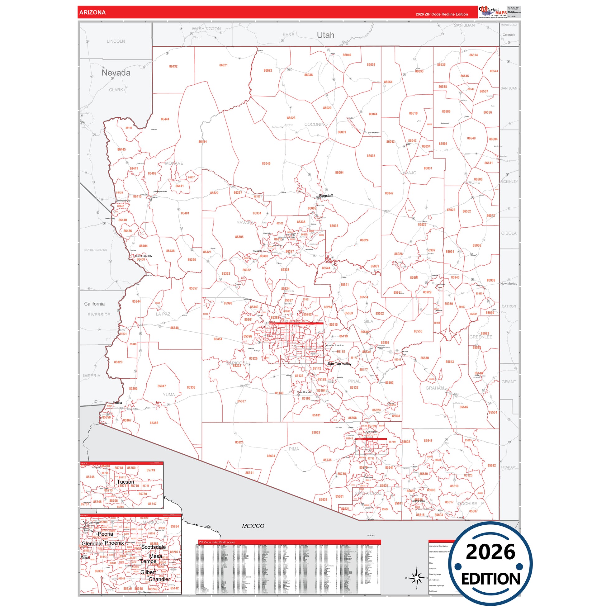 The Red Line Style Arizona State Map provides a crisp, easy-to-read design with essential map details. Ideal for business planning, sales territory mapping, route tracking, and educational use, this Arizona map clearly shows all major highways against a clean white background for maximum visibility. Its detailed highway network makes it perfect for marking locations, planning routes, and visualizing territories throughout Arizona.