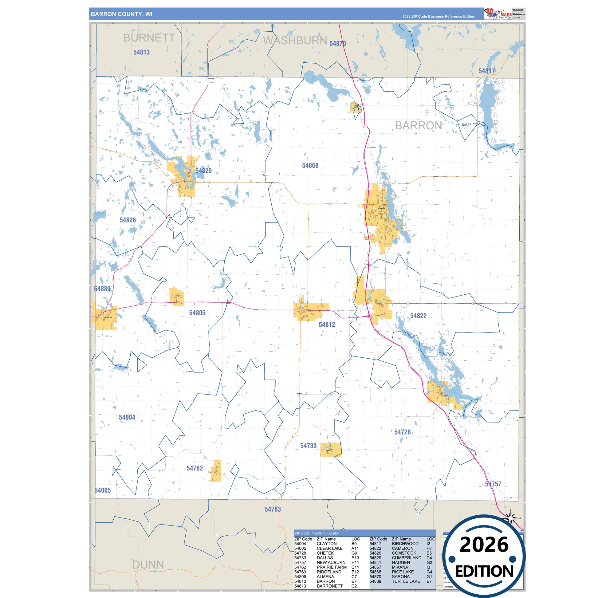The Business Reference Style Barron County, WI is a detailed map that includes all towns, cities, major roadways, and highways. Available in multiple wall map sizes, perfect for home, school, office, or business display.