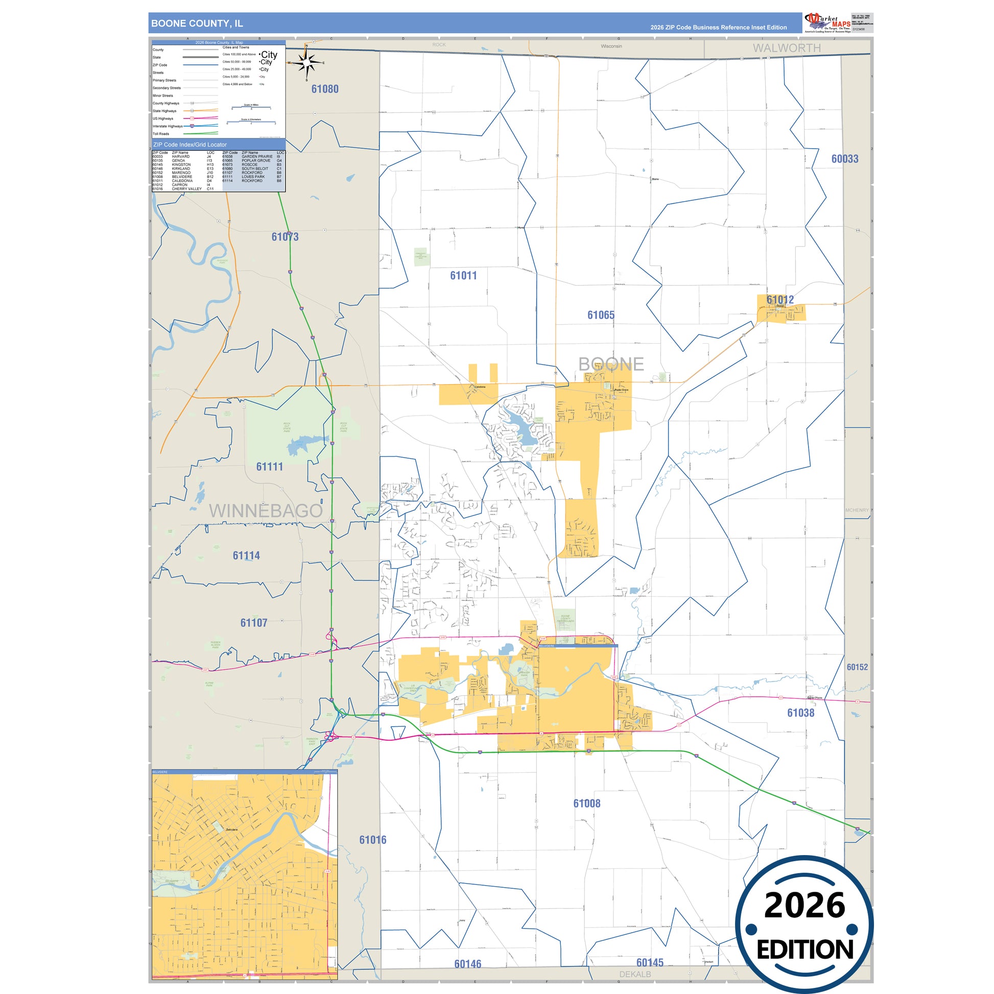 The Business Reference Style Boone County, IL is a detailed map that includes all towns, cities, major roadways, and highways. Available in multiple wall map sizes, perfect for home, school, office, or business display.