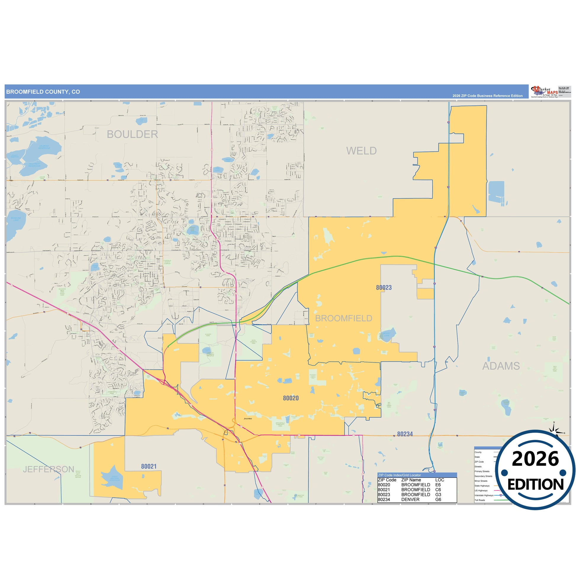 The Business Reference Style Broomfield County, CO is a detailed map that includes all towns, cities, major roadways, and highways. Available in multiple wall map sizes, perfect for home, school, office, or business display.