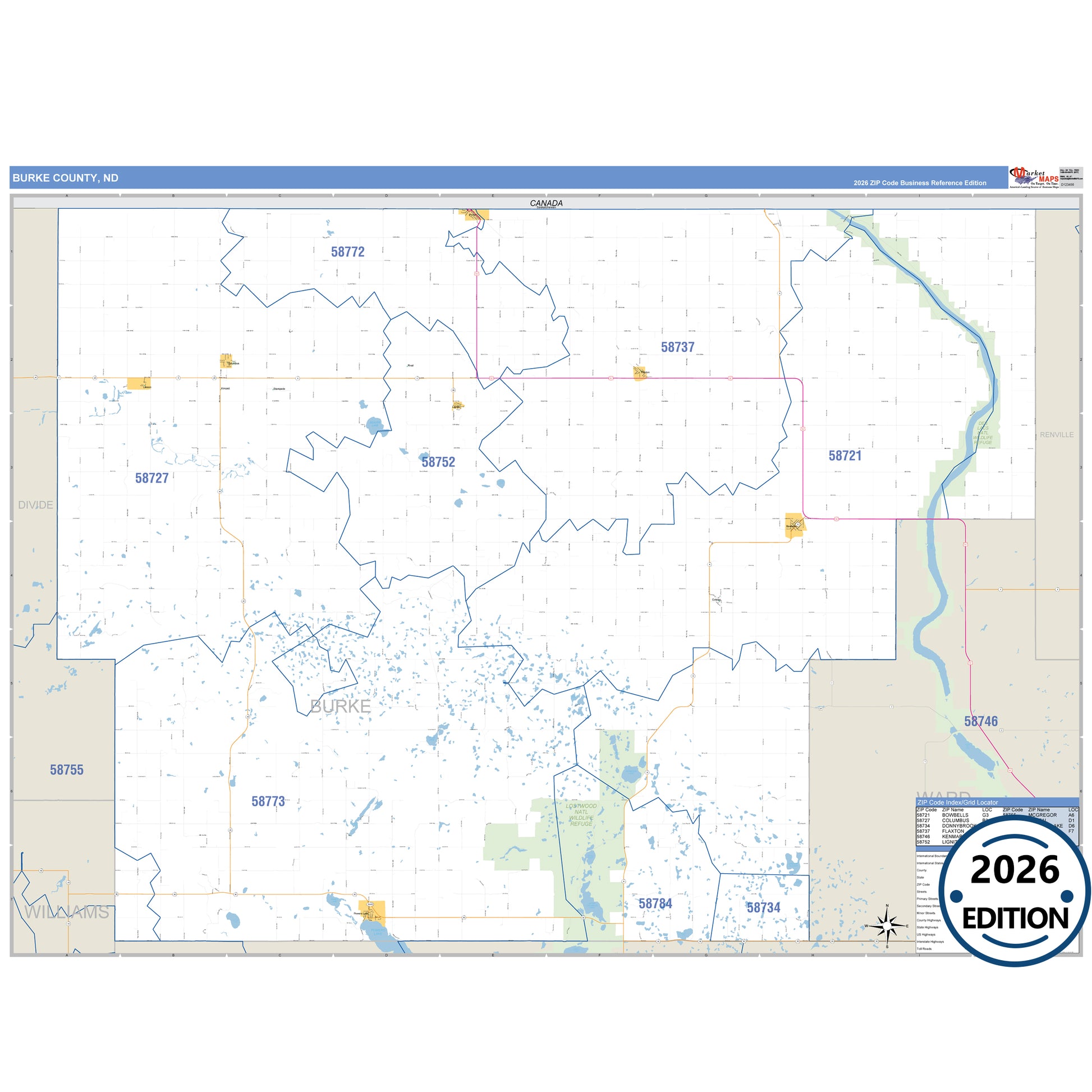 The Business Reference Style Burke County, ND is a detailed map that includes all towns, cities, major roadways, and highways. Available in multiple wall map sizes, perfect for home, school, office, or business display.