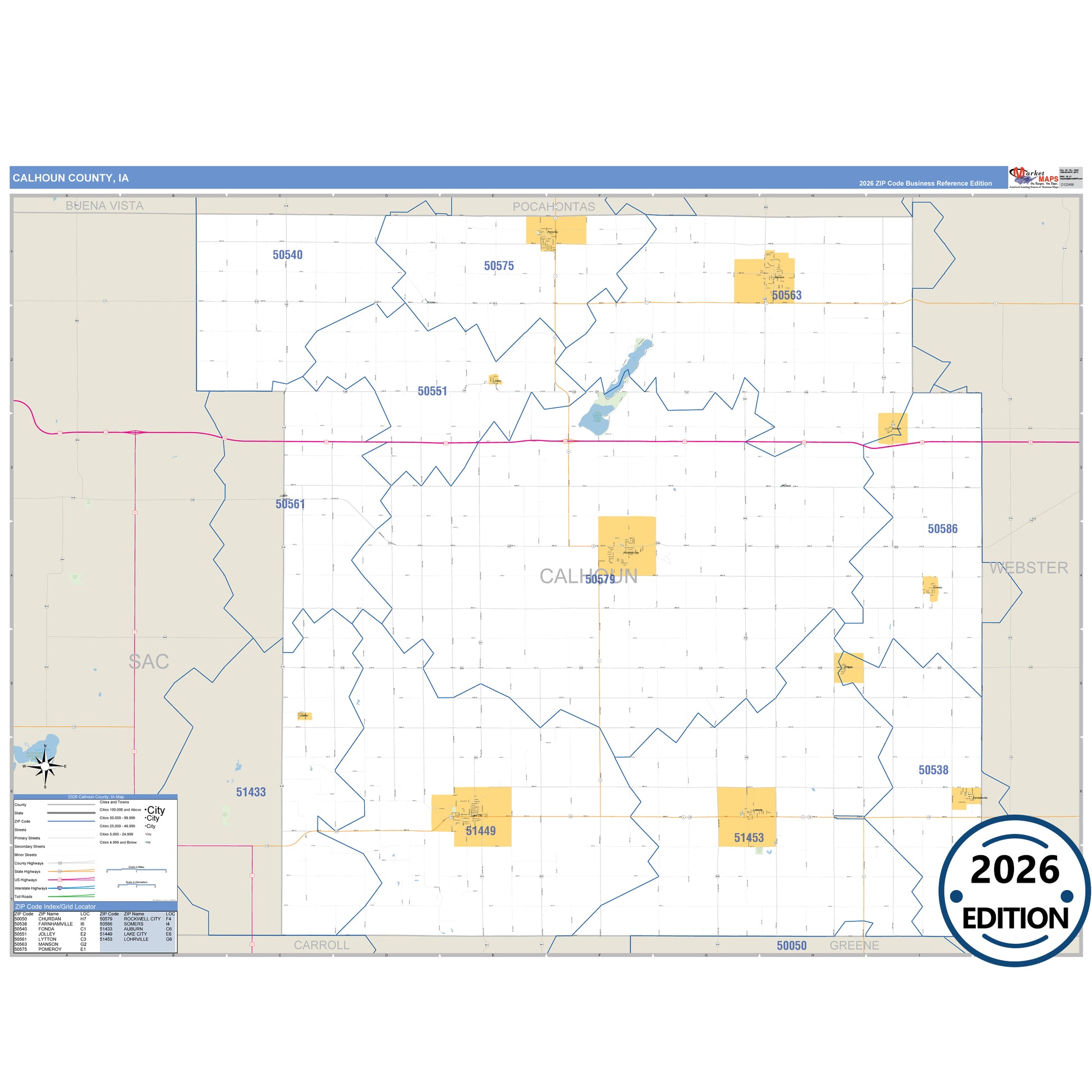 The Business Reference Style Calhoun County, IA is a detailed map that includes all towns, cities, major roadways, and highways. Available in multiple wall map sizes, perfect for home, school, office, or business display.