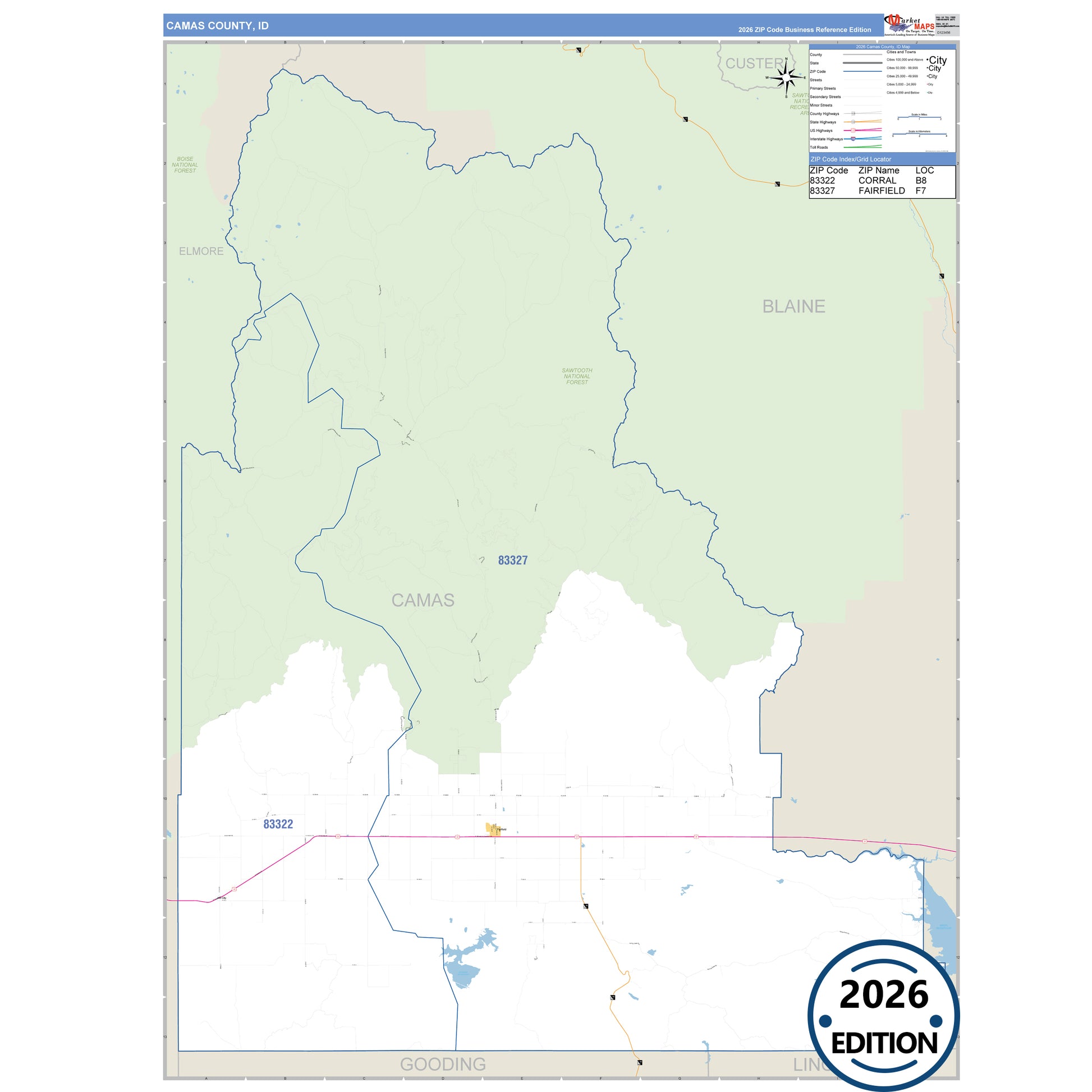 The Business Reference Style Camas County, ID is a detailed map that includes all towns, cities, major roadways, and highways. Available in multiple wall map sizes, perfect for home, school, office, or business display.