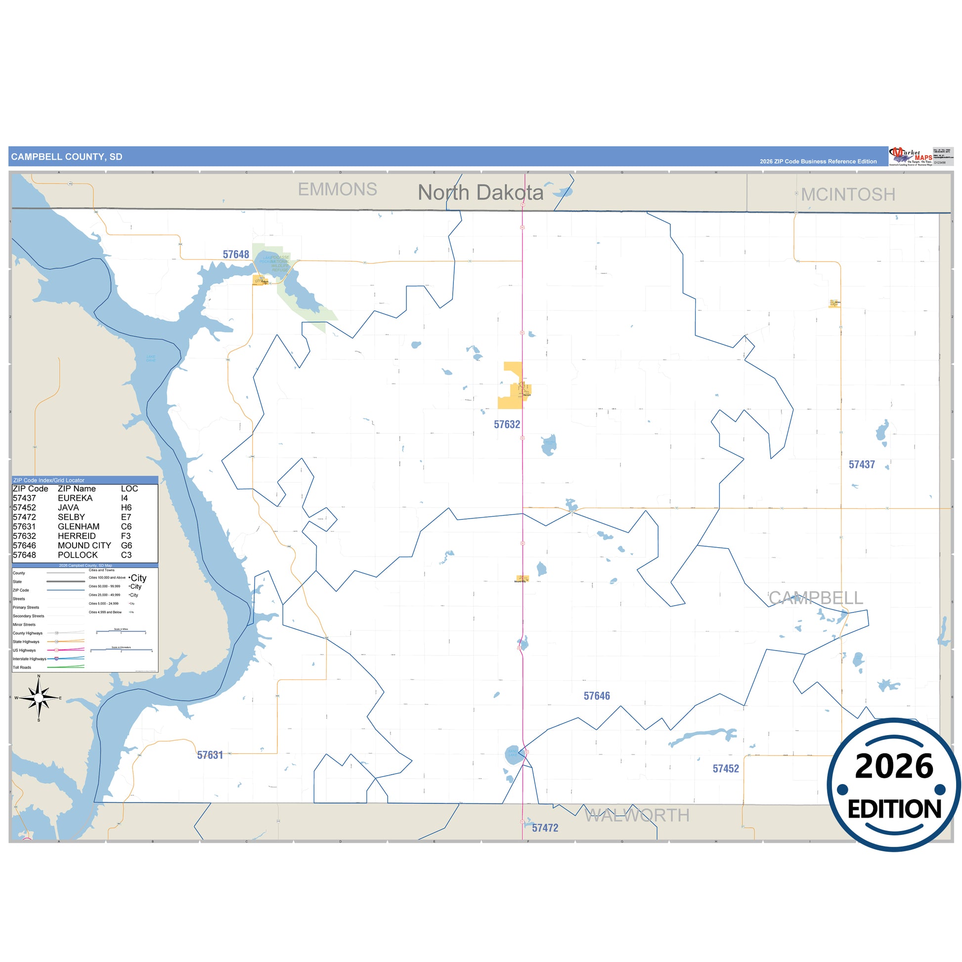 The Business Reference Style Campbell County, SD is a detailed map that includes all towns, cities, major roadways, and highways. Available in multiple wall map sizes, perfect for home, school, office, or business display.
