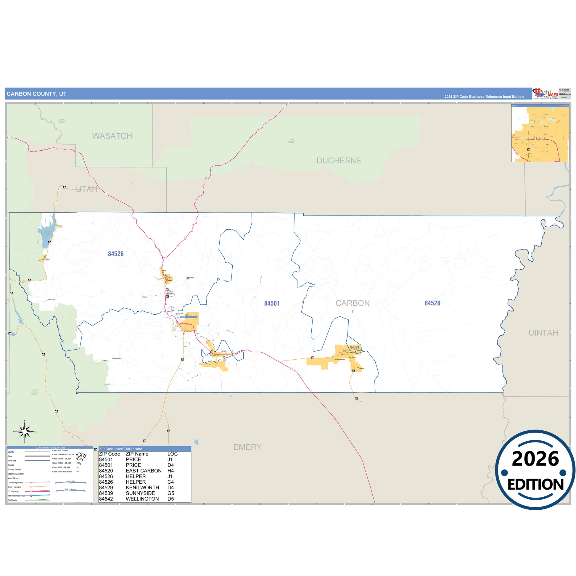 The Business Reference Style Carbon County, UT is a detailed map that includes all towns, cities, major roadways, and highways. Available in multiple wall map sizes, perfect for home, school, office, or business display.