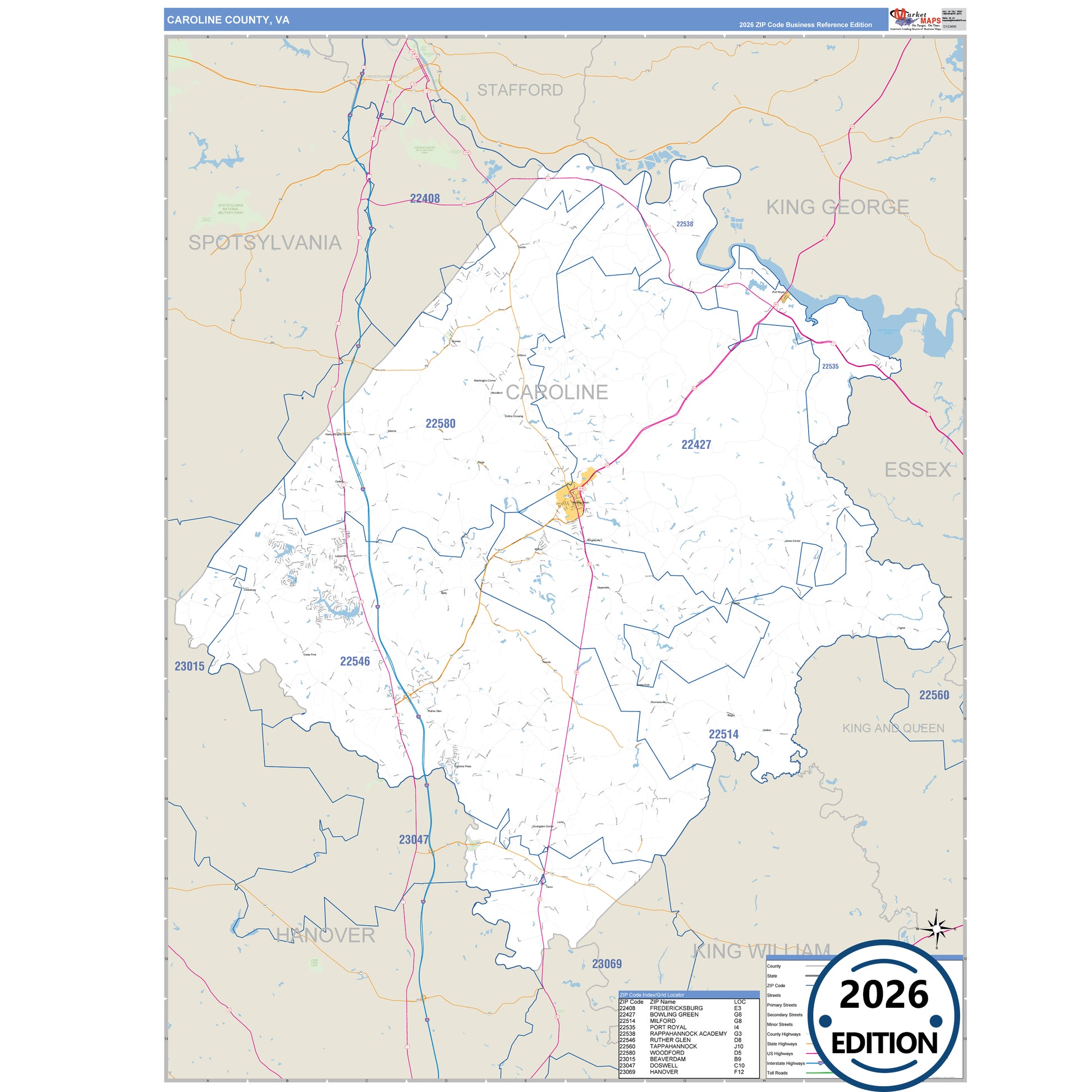 The Business Reference Style Caroline County, VA is a detailed map that includes all towns, cities, major roadways, and highways. Available in multiple wall map sizes, perfect for home, school, office, or business display.