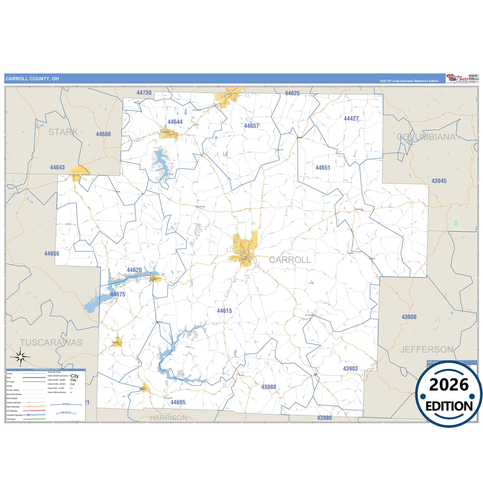 The Business Reference Style Carroll County, OH is a detailed map that includes all towns, cities, major roadways, and highways. Available in multiple wall map sizes, perfect for home, school, office, or business display.