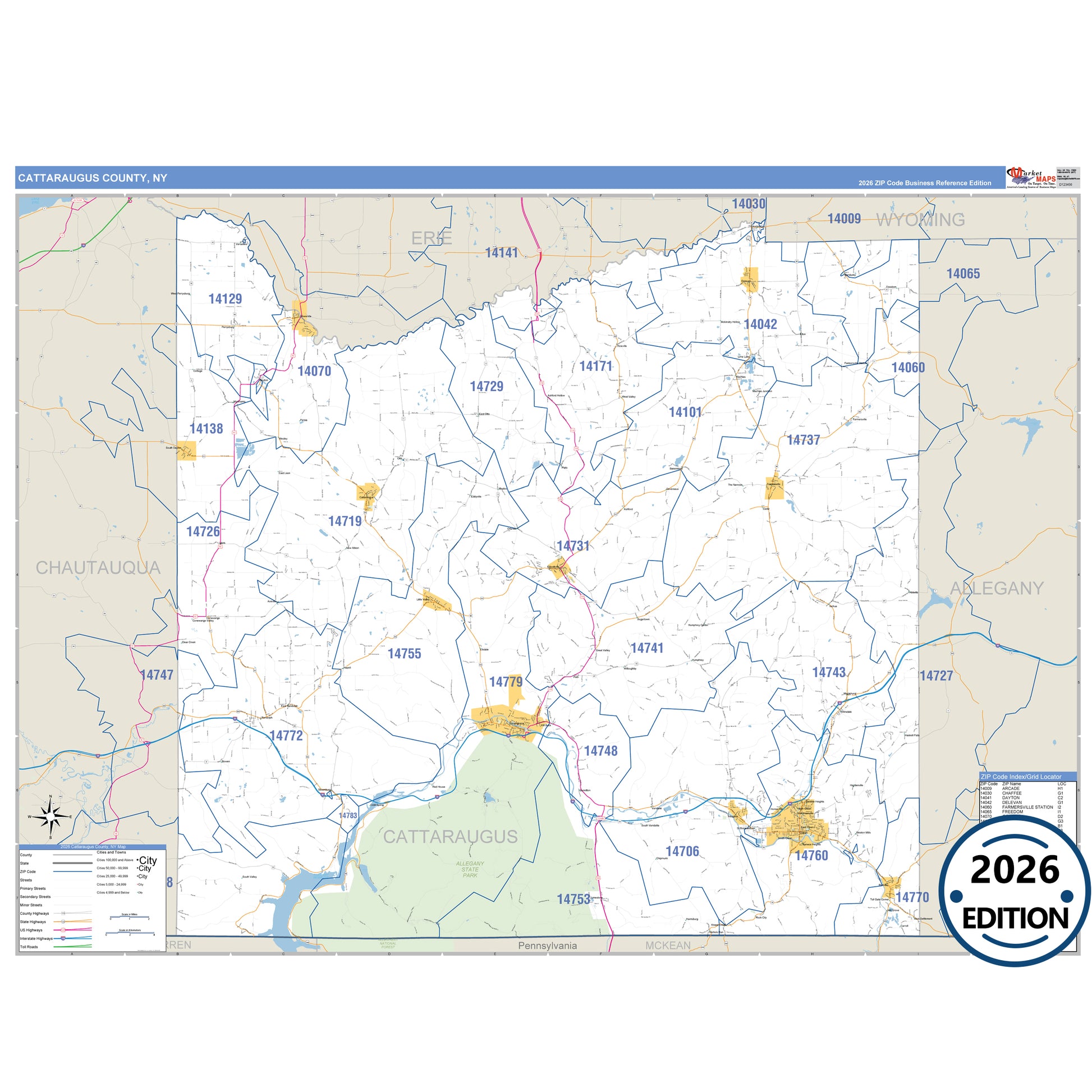 The Business Reference Style Cattaraugus County, NY is a detailed map that includes all towns, cities, major roadways, and highways. Available in multiple wall map sizes, perfect for home, school, office, or business display.