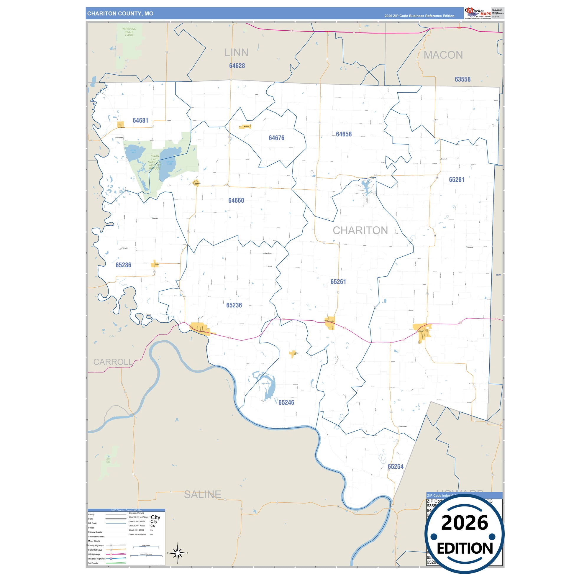 The Business Reference Style Chariton County, MO is a detailed map that includes all towns, cities, major roadways, and highways. Available in multiple wall map sizes, perfect for home, school, office, or business display.