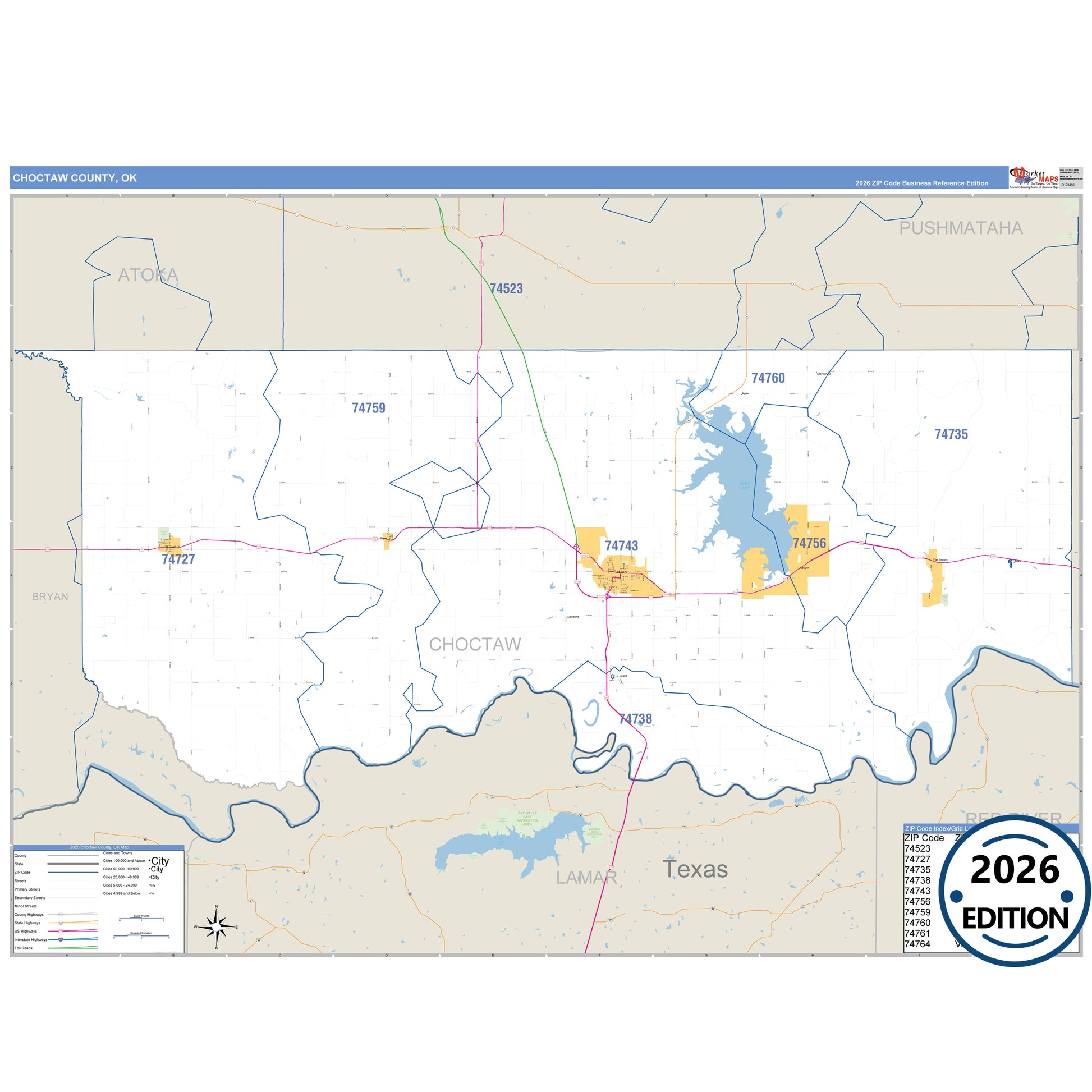 The Business Reference Style Choctaw County, OK is a detailed map that includes all towns, cities, major roadways, and highways. Available in multiple wall map sizes, perfect for home, school, office, or business display.