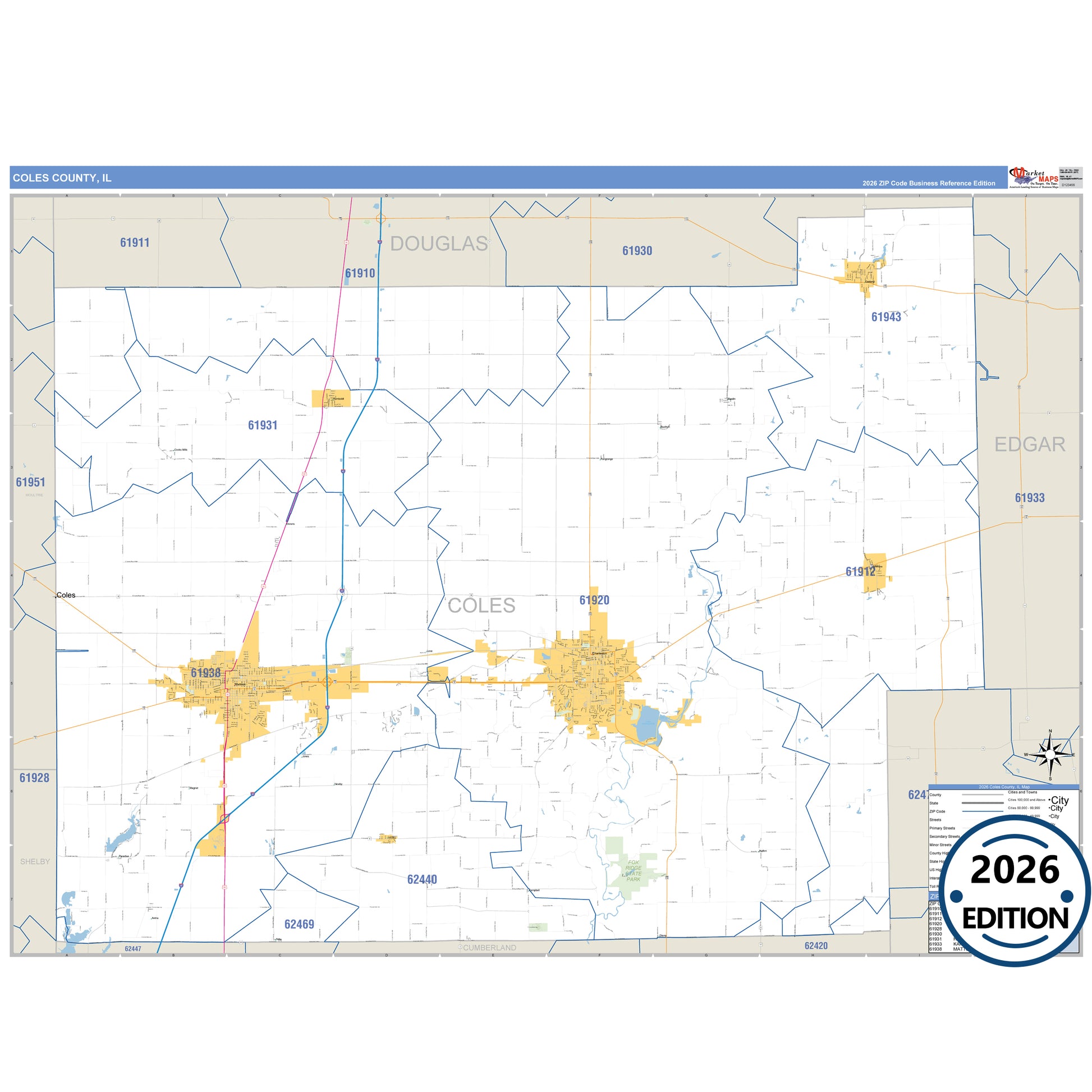 The Business Reference Style Coles County, IL is a detailed map that includes all towns, cities, major roadways, and highways. Available in multiple wall map sizes, perfect for home, school, office, or business display.