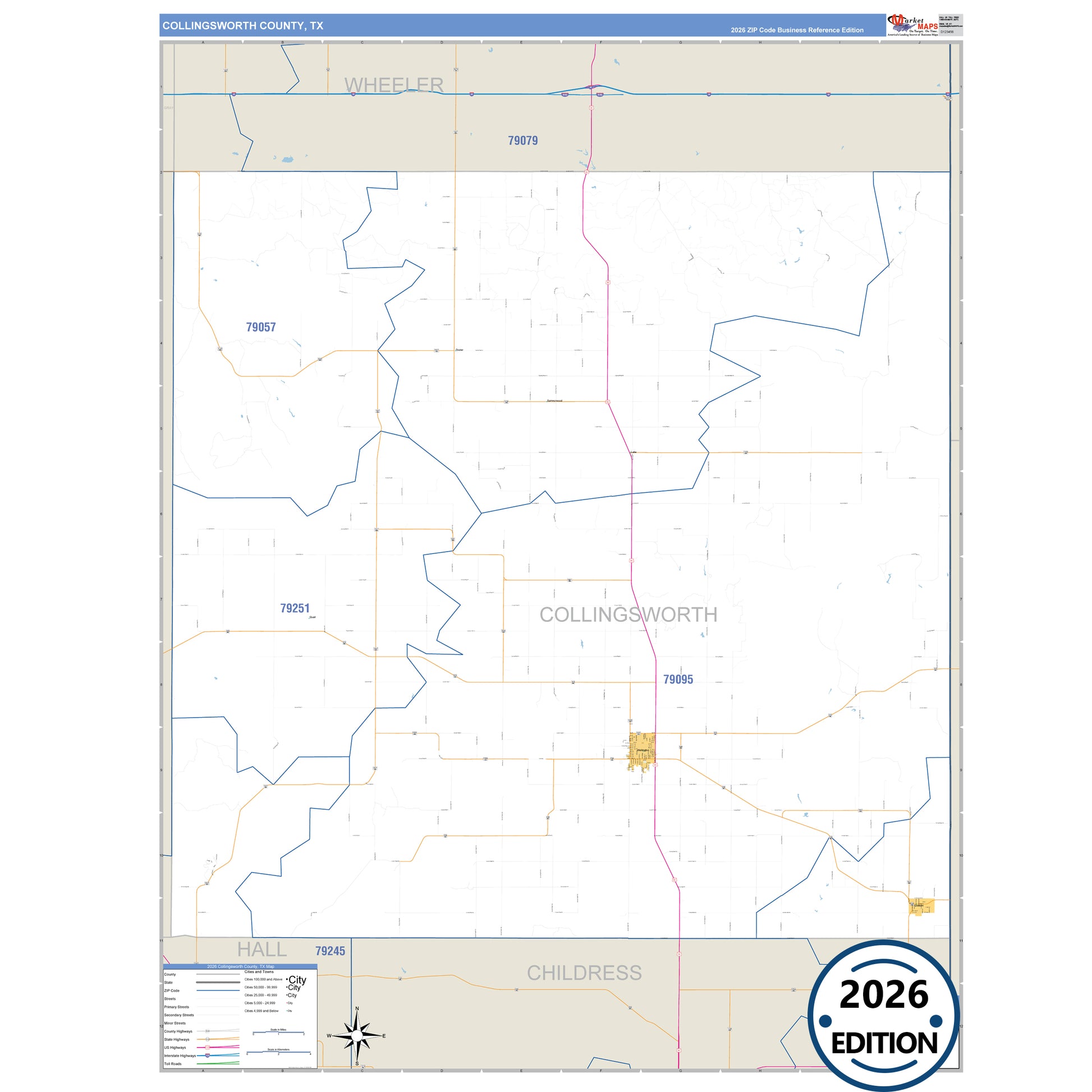 The Business Reference Style Collingsworth County, TX is a detailed map that includes all towns, cities, major roadways, and highways. Available in multiple wall map sizes, perfect for home, school, office, or business display.