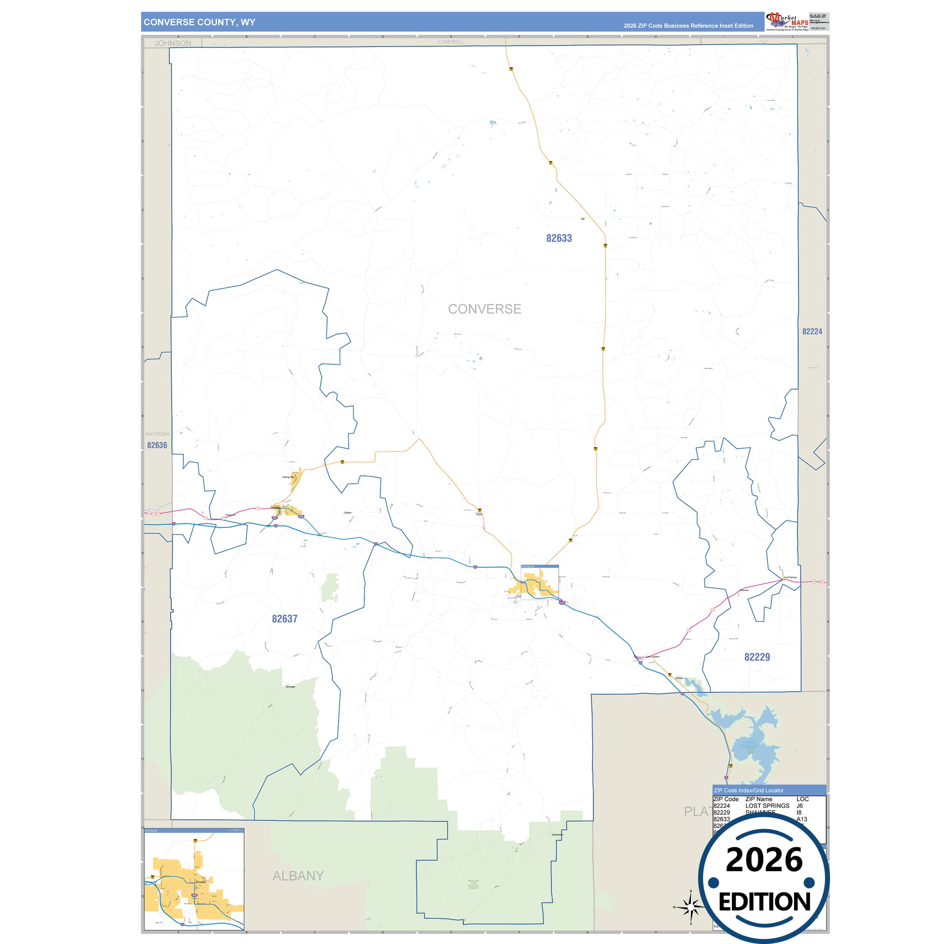 The Business Reference Style Converse County, WY is a detailed map that includes all towns, cities, major roadways, and highways. Available in multiple wall map sizes, perfect for home, school, office, or business display.