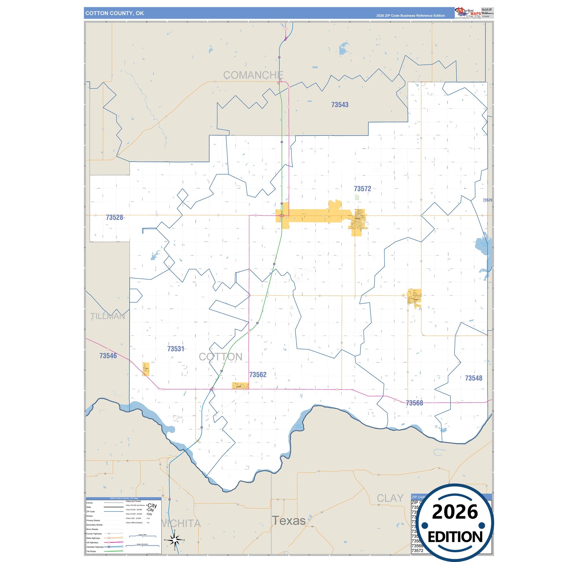 The Business Reference Style Cotton County, OK is a detailed map that includes all towns, cities, major roadways, and highways. Available in multiple wall map sizes, perfect for home, school, office, or business display.