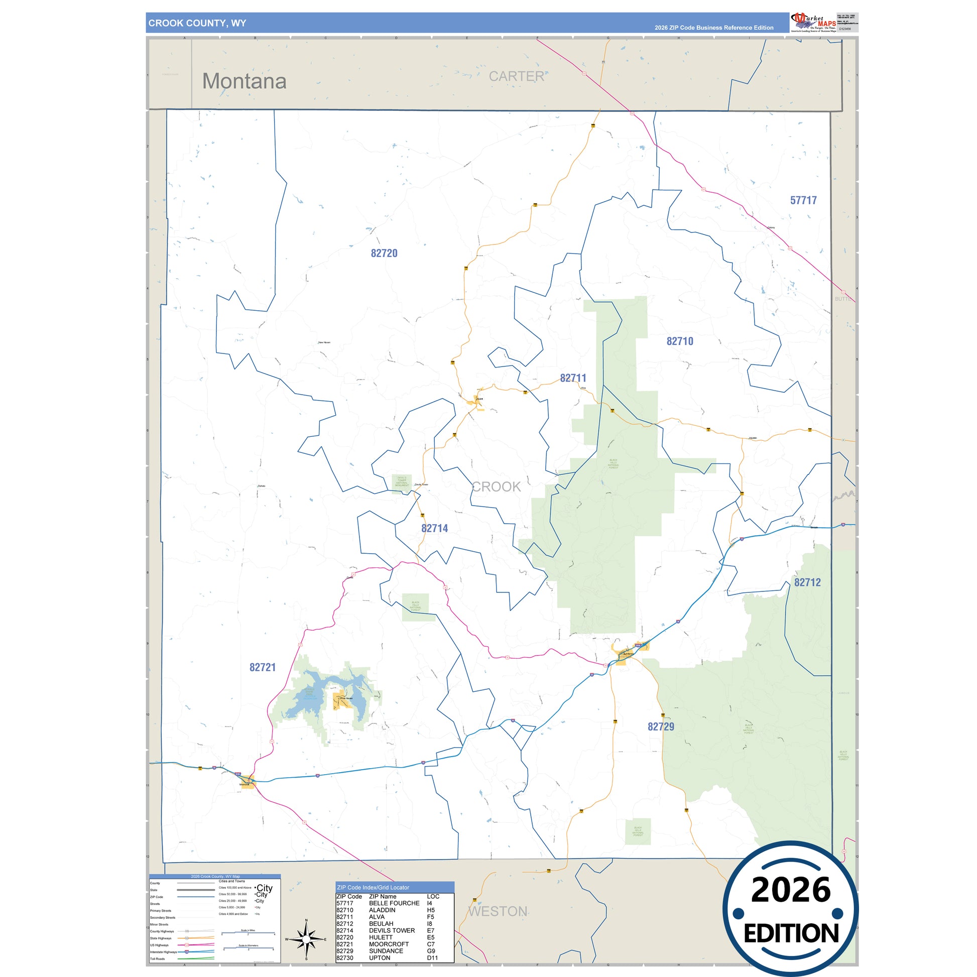 The Business Reference Style Crook County, WY is a detailed map that includes all towns, cities, major roadways, and highways. Available in multiple wall map sizes, perfect for home, school, office, or business display.