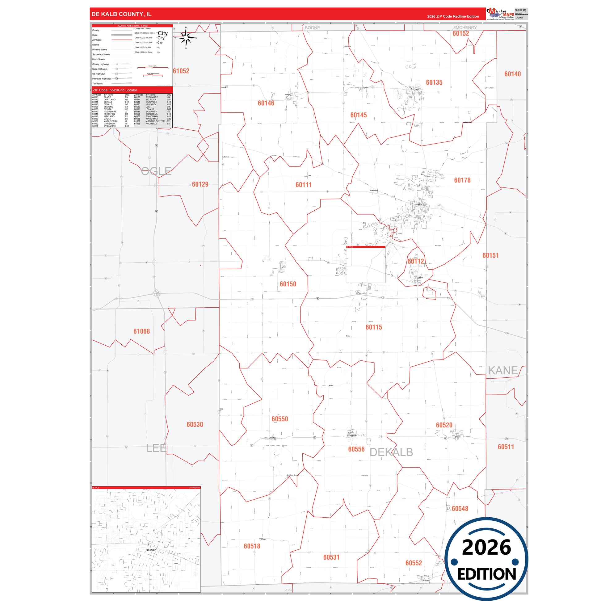 The RedLine Style map of De Witt County, IL shows ZIP code areas overlaid on a detailed road network of De Witt County, Illinois. Ideal for drawing locations, territories, and other applications. Base map features include all major streets and highways labeled, cities and towns, county and state boundaries, neighborhood names, railroads, and a clean white background suitable for marking and planning.