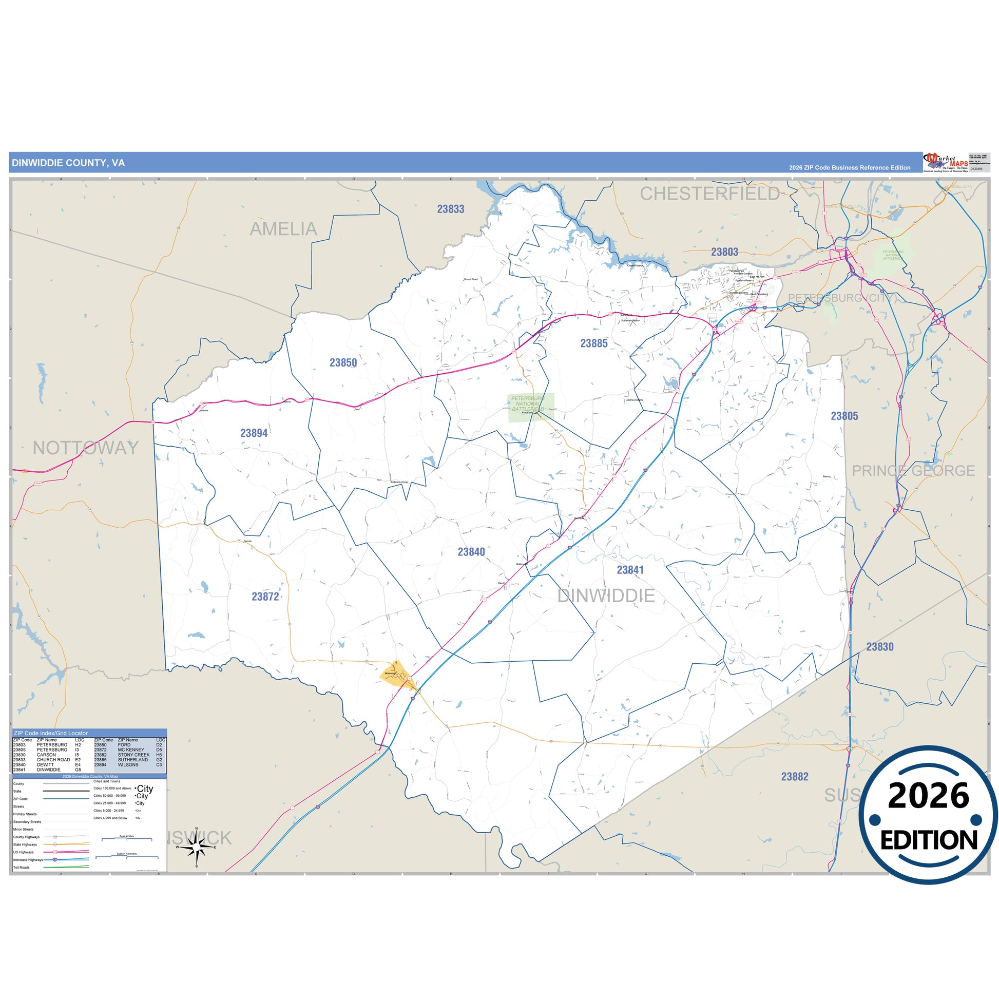 The Business Reference Style Dinwiddie County, VA is a detailed map that includes all towns, cities, major roadways, and highways. Available in multiple wall map sizes, perfect for home, school, office, or business display.