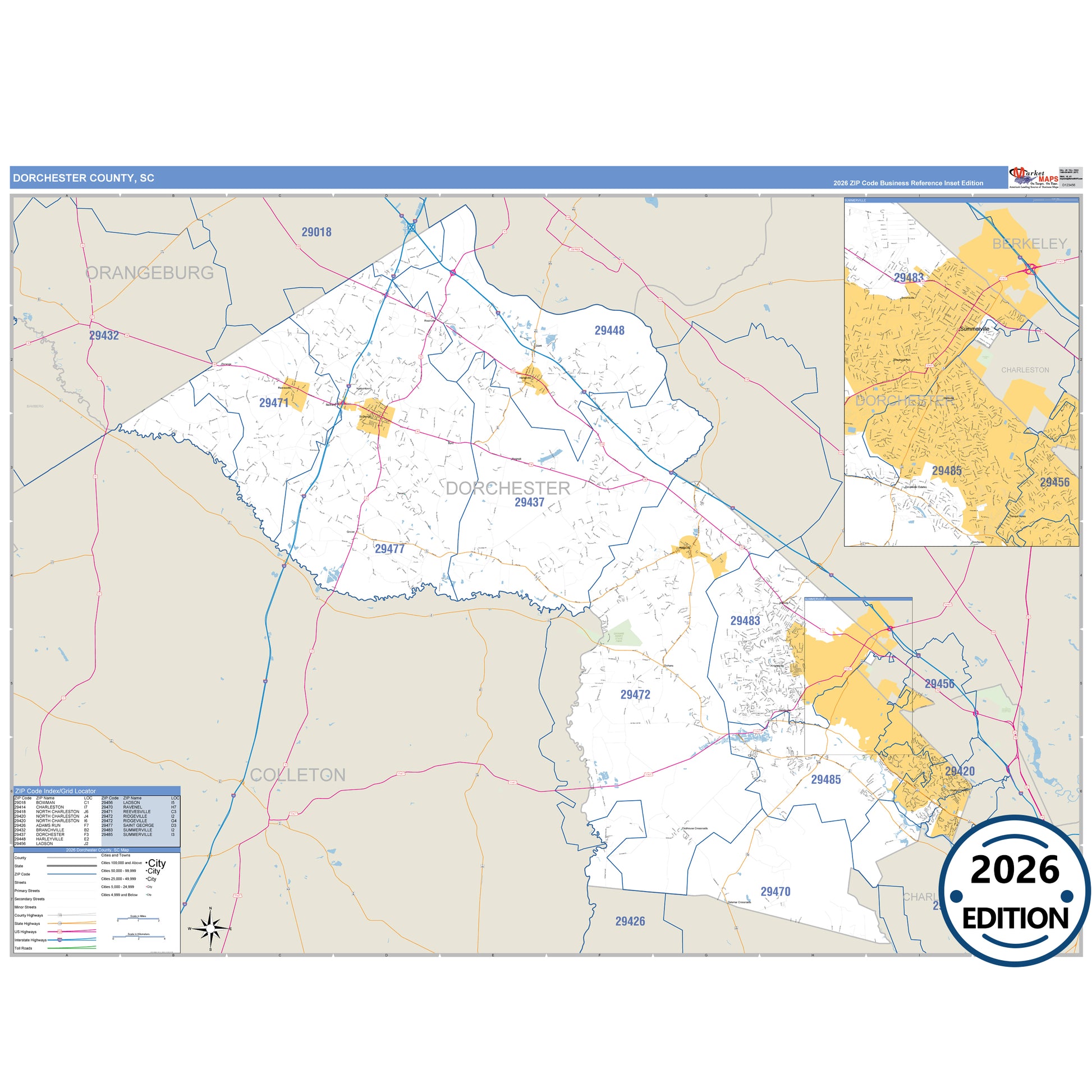 The Business Reference Style Dorchester County, SC is a detailed map that includes all towns, cities, major roadways, and highways. Available in multiple wall map sizes, perfect for home, school, office, or business display.