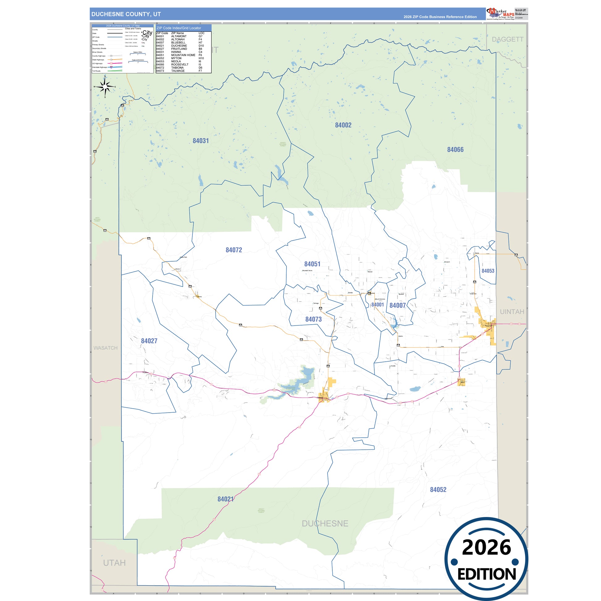 The Business Reference Style Duchesne County, UT is a detailed map that includes all towns, cities, major roadways, and highways. Available in multiple wall map sizes, perfect for home, school, office, or business display.