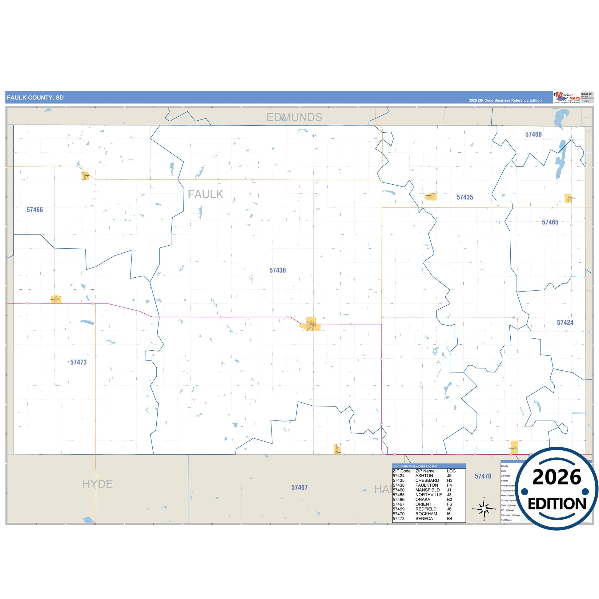 The Business Reference Style Faulk County, SD is a detailed map that includes all towns, cities, major roadways, and highways. Available in multiple wall map sizes, perfect for home, school, office, or business display.