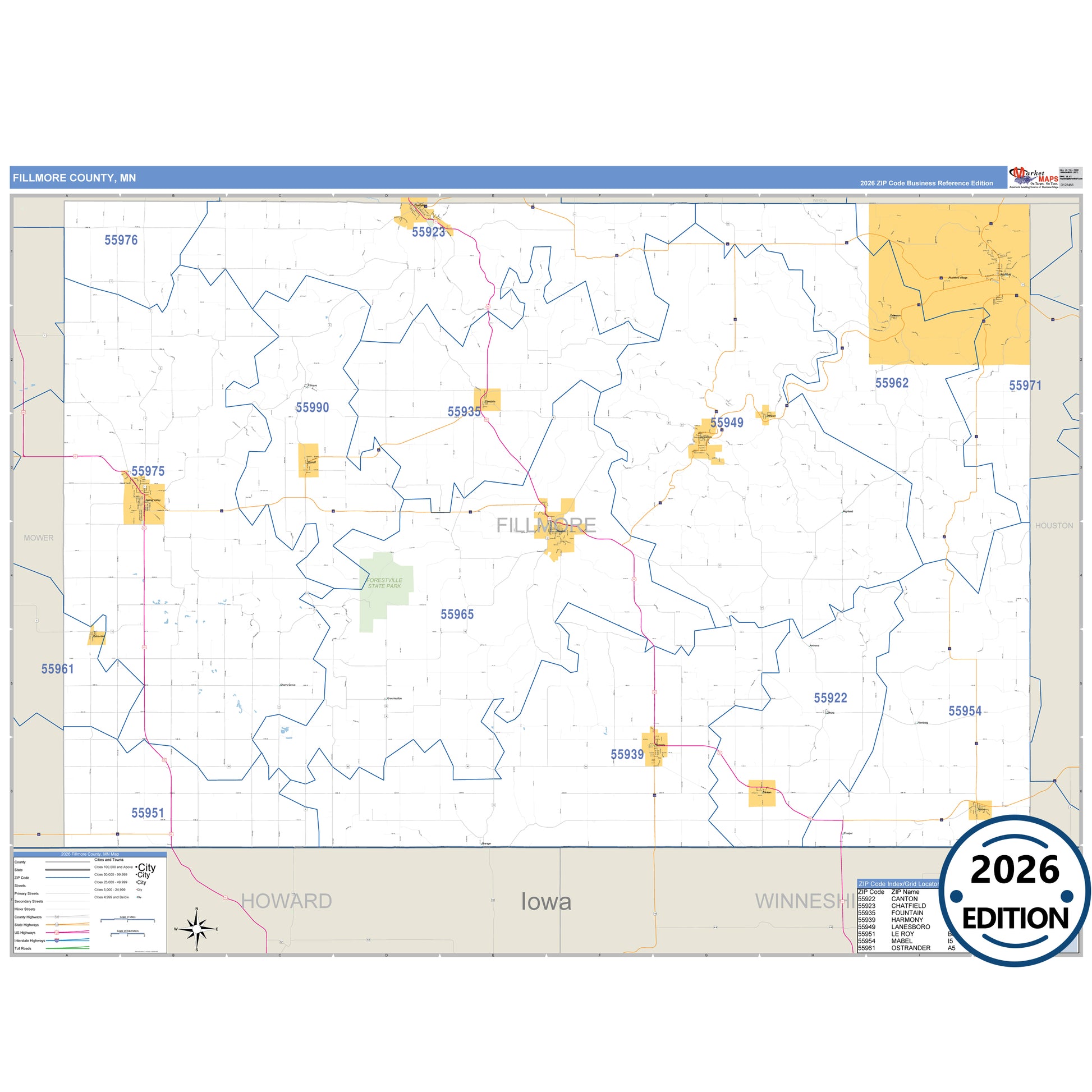 The Business Reference Style Fillmore County, MN is a detailed map that includes all towns, cities, major roadways, and highways. Available in multiple wall map sizes, perfect for home, school, office, or business display.