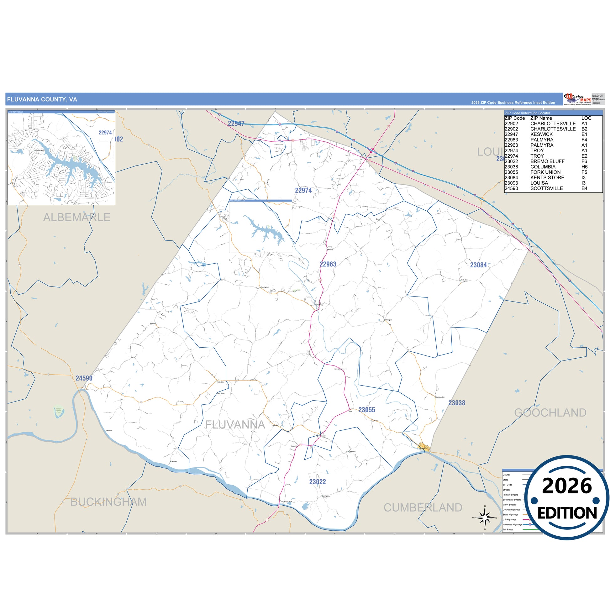 The Business Reference Style Fluvanna County, VA is a detailed map that includes all towns, cities, major roadways, and highways. Available in multiple wall map sizes, perfect for home, school, office, or business display.
