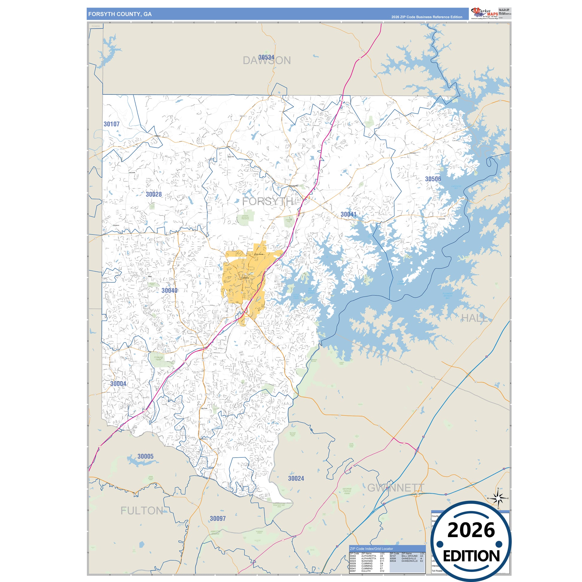 The Business Reference Style Forsyth County, GA is a detailed map that includes all towns, cities, major roadways, and highways. Available in multiple wall map sizes, perfect for home, school, office, or business display.