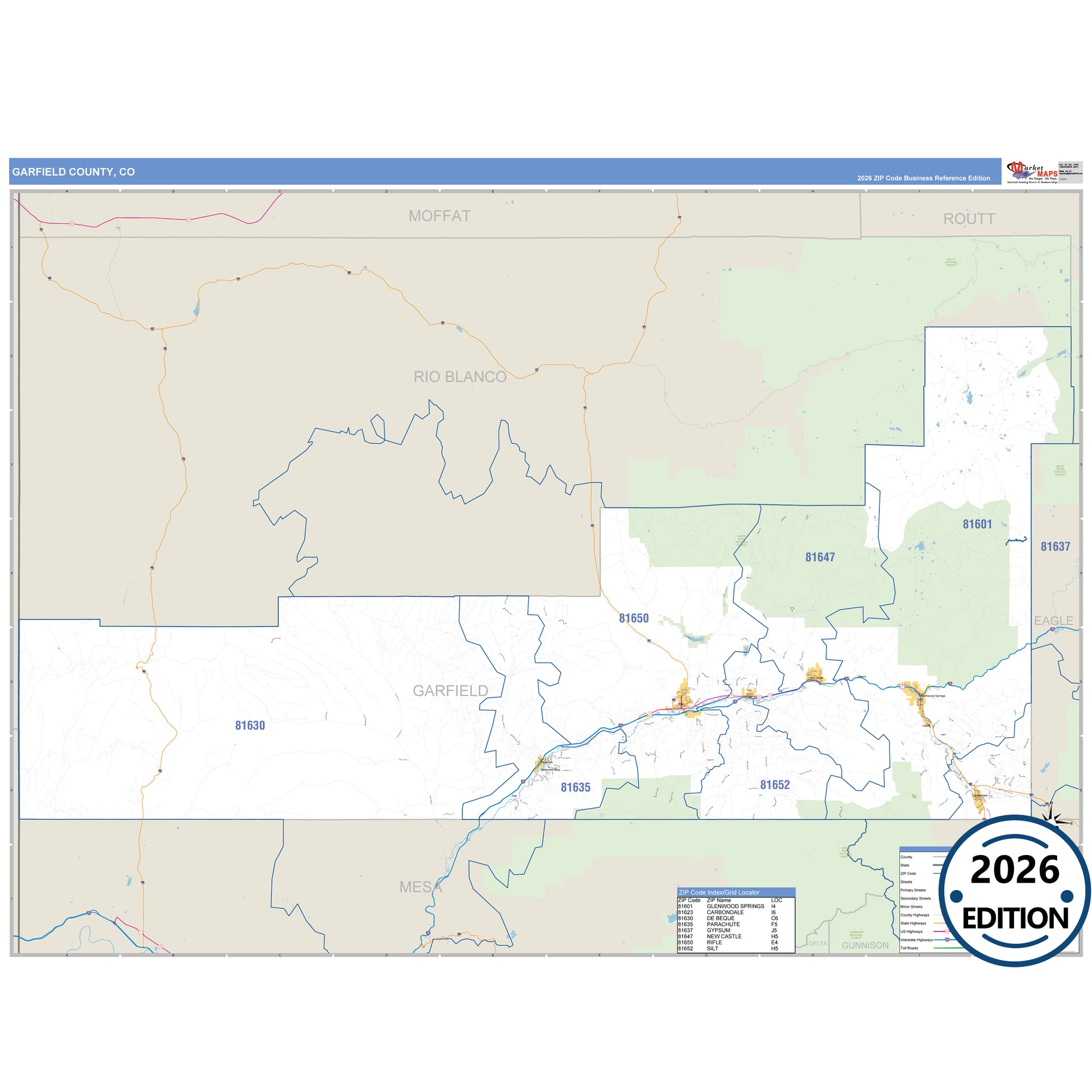 The Business Reference Style Garfield County, CO is a detailed map that includes all towns, cities, major roadways, and highways. Available in multiple wall map sizes, perfect for home, school, office, or business display.