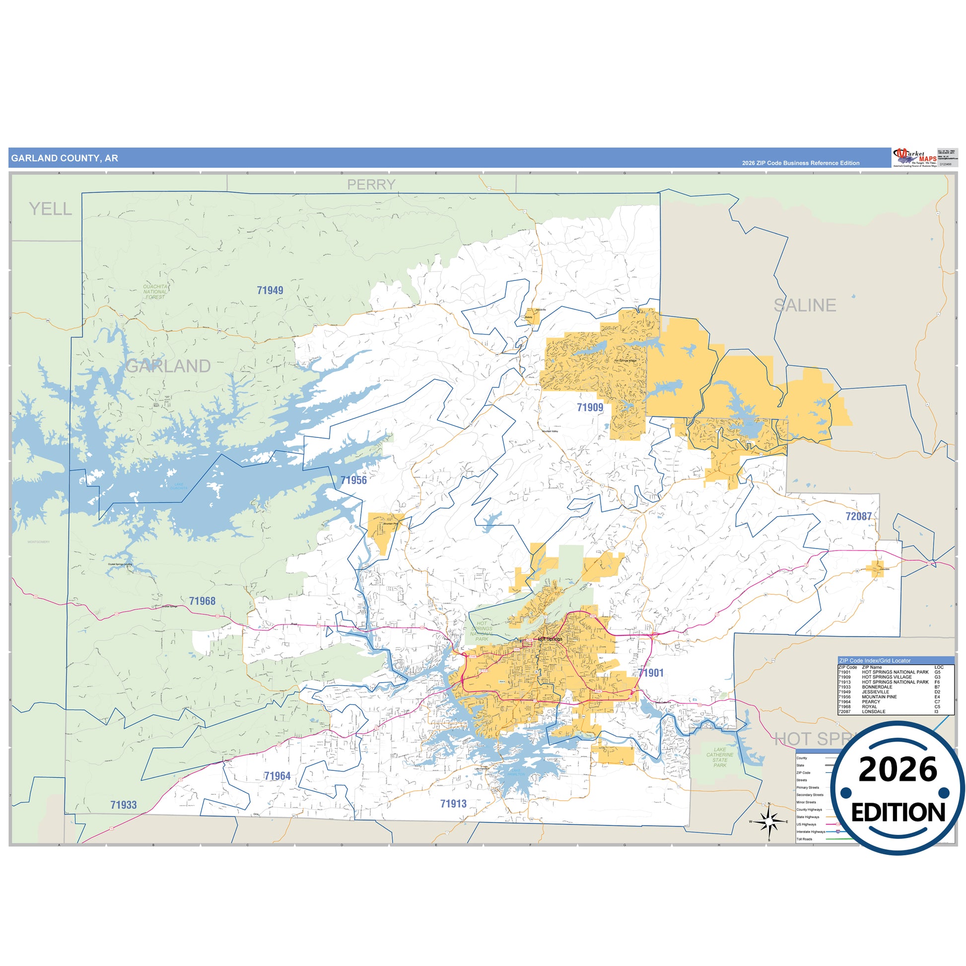 The Business Reference Style Garland County, AR is a detailed map that includes all towns, cities, major roadways, and highways. Available in multiple wall map sizes, perfect for home, school, office, or business display.