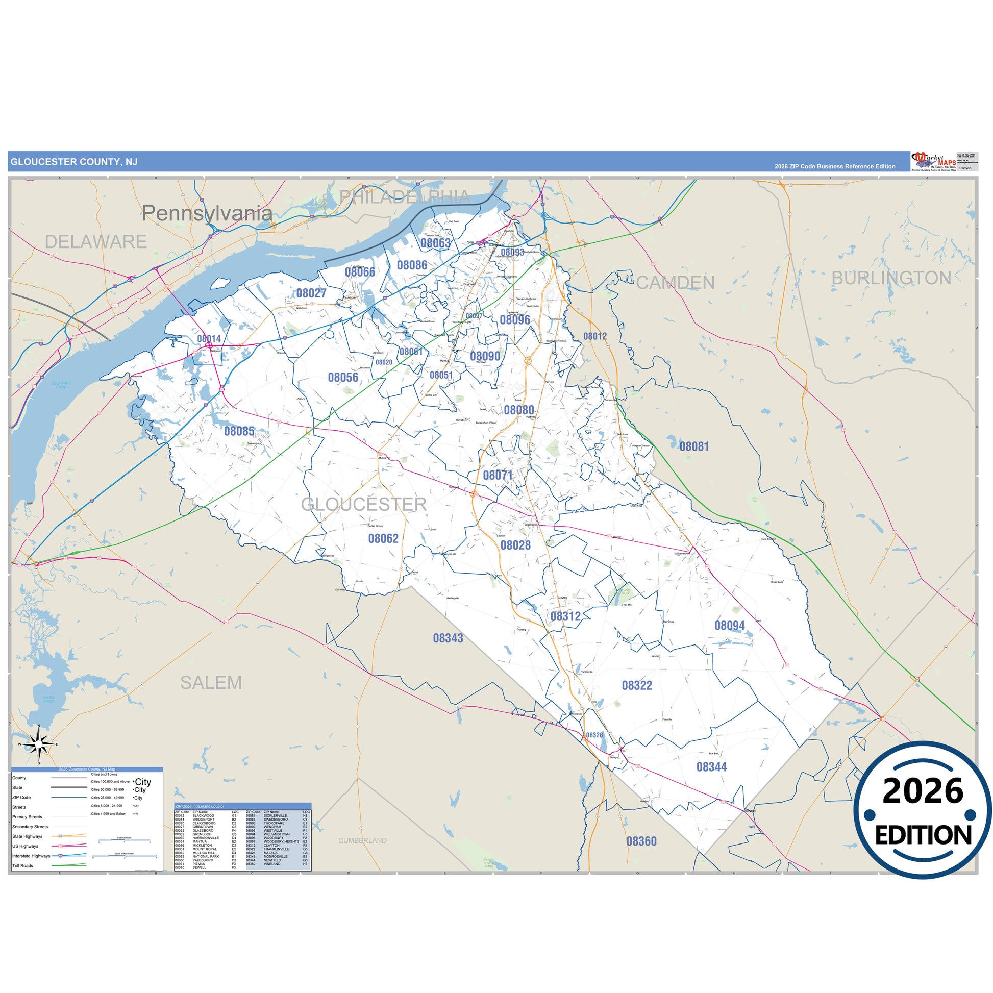 The Business Reference Style Gloucester County, NJ is a detailed map that includes all towns, cities, major roadways, and highways. Available in multiple wall map sizes, perfect for home, school, office, or business display.