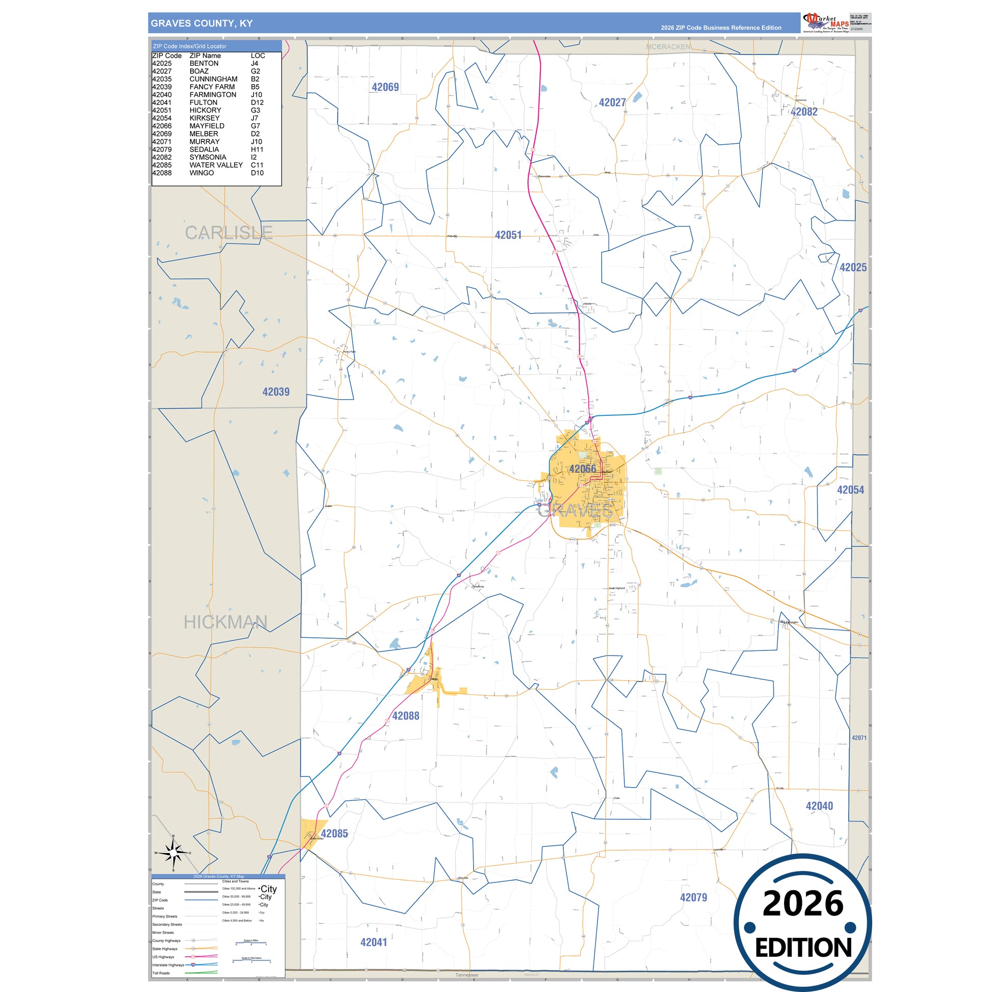 The Business Reference Style Graves County, KY is a detailed map that includes all towns, cities, major roadways, and highways. Available in multiple wall map sizes, perfect for home, school, office, or business display.