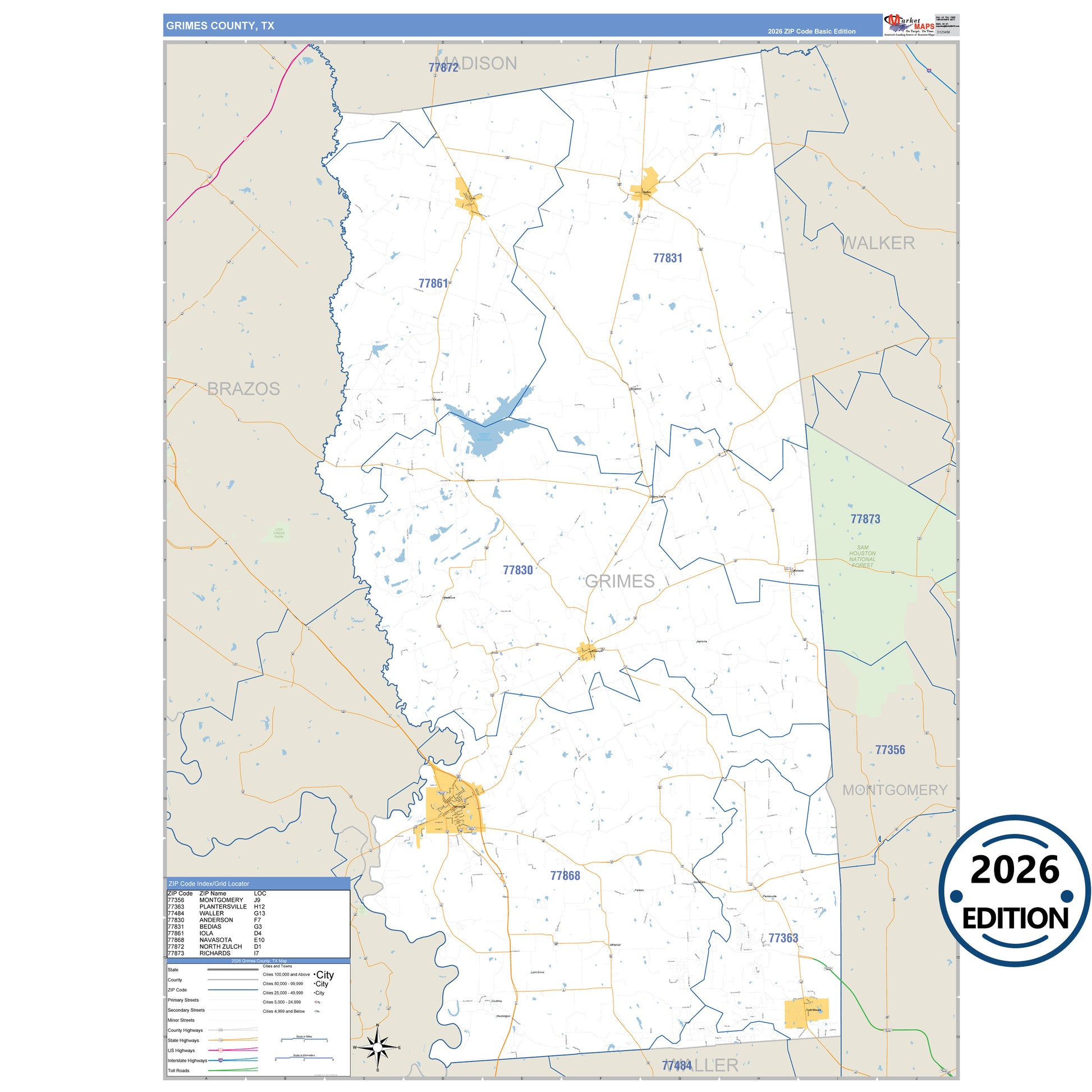 The Business Reference Style Grimes County, TX is a detailed map that includes all towns, cities, major roadways, and highways. Available in multiple wall map sizes, perfect for home, school, office, or business display.