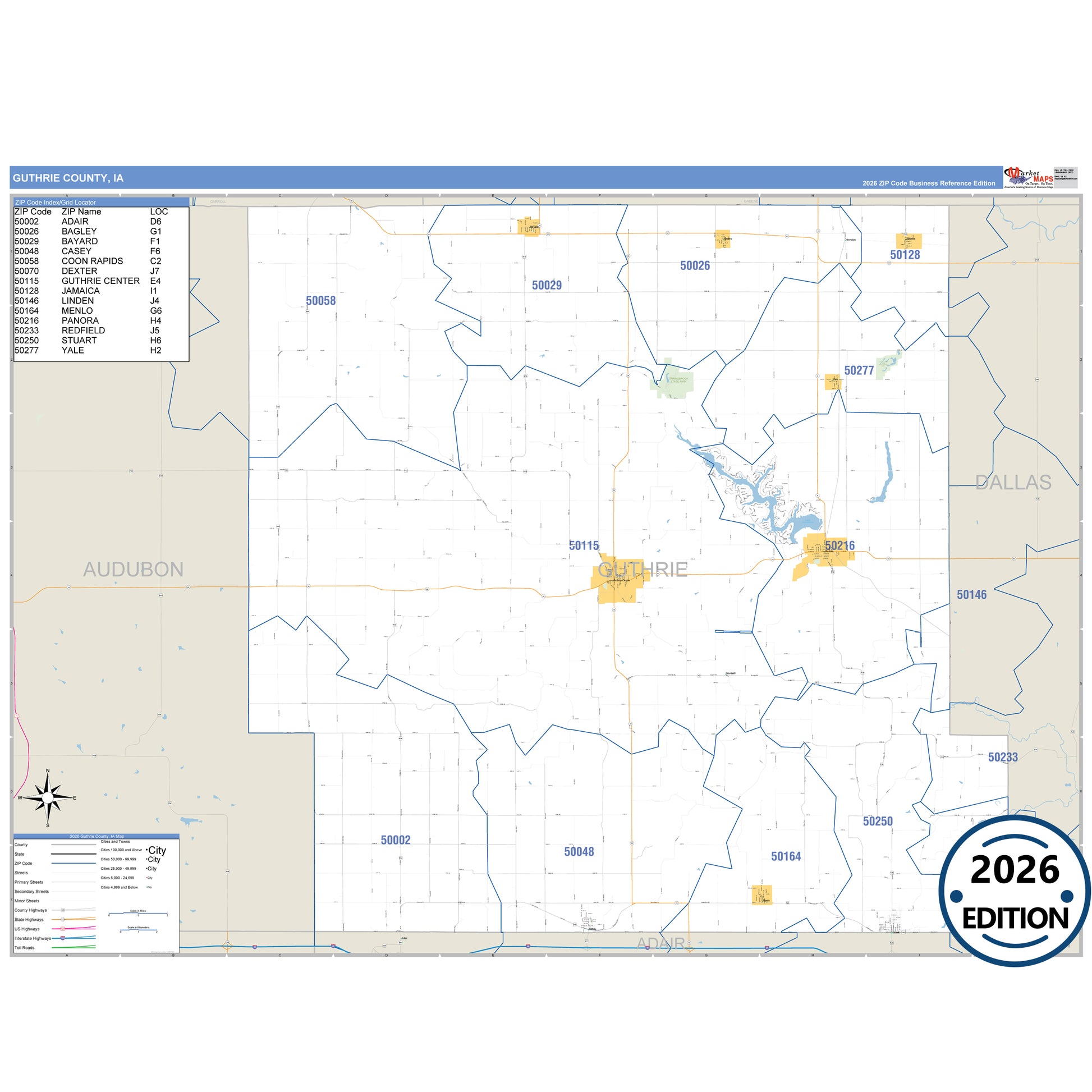 The Business Reference Style Guthrie County, IA is a detailed map that includes all towns, cities, major roadways, and highways. Available in multiple wall map sizes, perfect for home, school, office, or business display.
