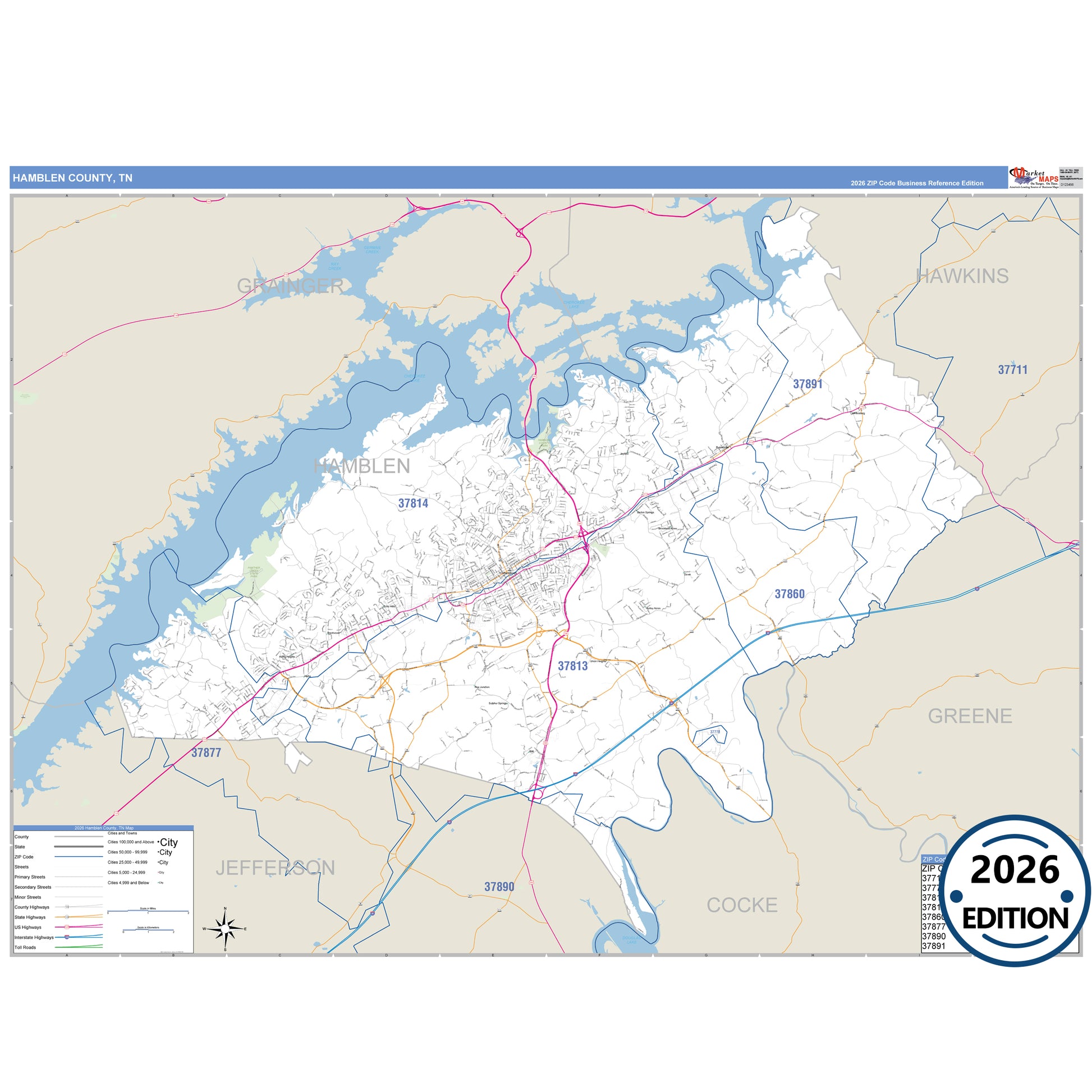 The Business Reference Style Hamblen County, TN is a detailed map that includes all towns, cities, major roadways, and highways. Available in multiple wall map sizes, perfect for home, school, office, or business display.