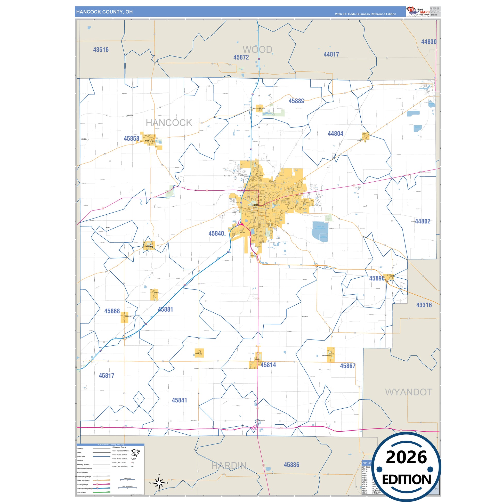 The Business Reference Style Hancock County, OH is a detailed map that includes all towns, cities, major roadways, and highways. Available in multiple wall map sizes, perfect for home, school, office, or business display.