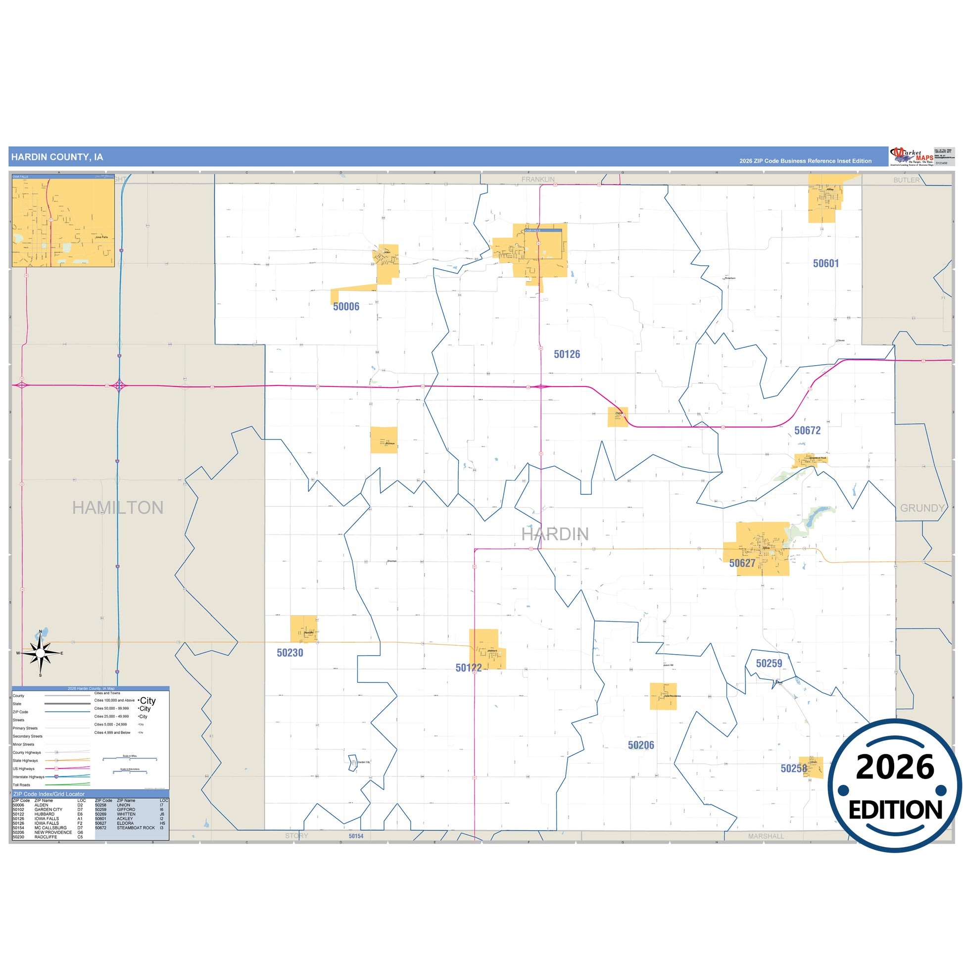 The Business Reference Style Hardin County, IA is a detailed map that includes all towns, cities, major roadways, and highways. Available in multiple wall map sizes, perfect for home, school, office, or business display.
