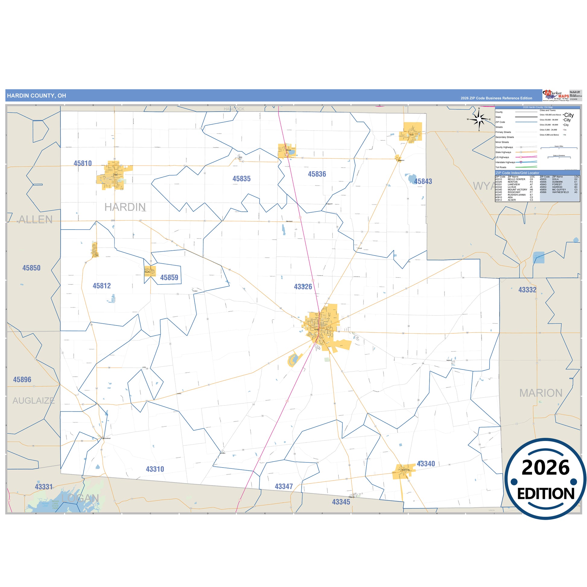 The Business Reference Style Hardin County, OH is a detailed map that includes all towns, cities, major roadways, and highways. Available in multiple wall map sizes, perfect for home, school, office, or business display.