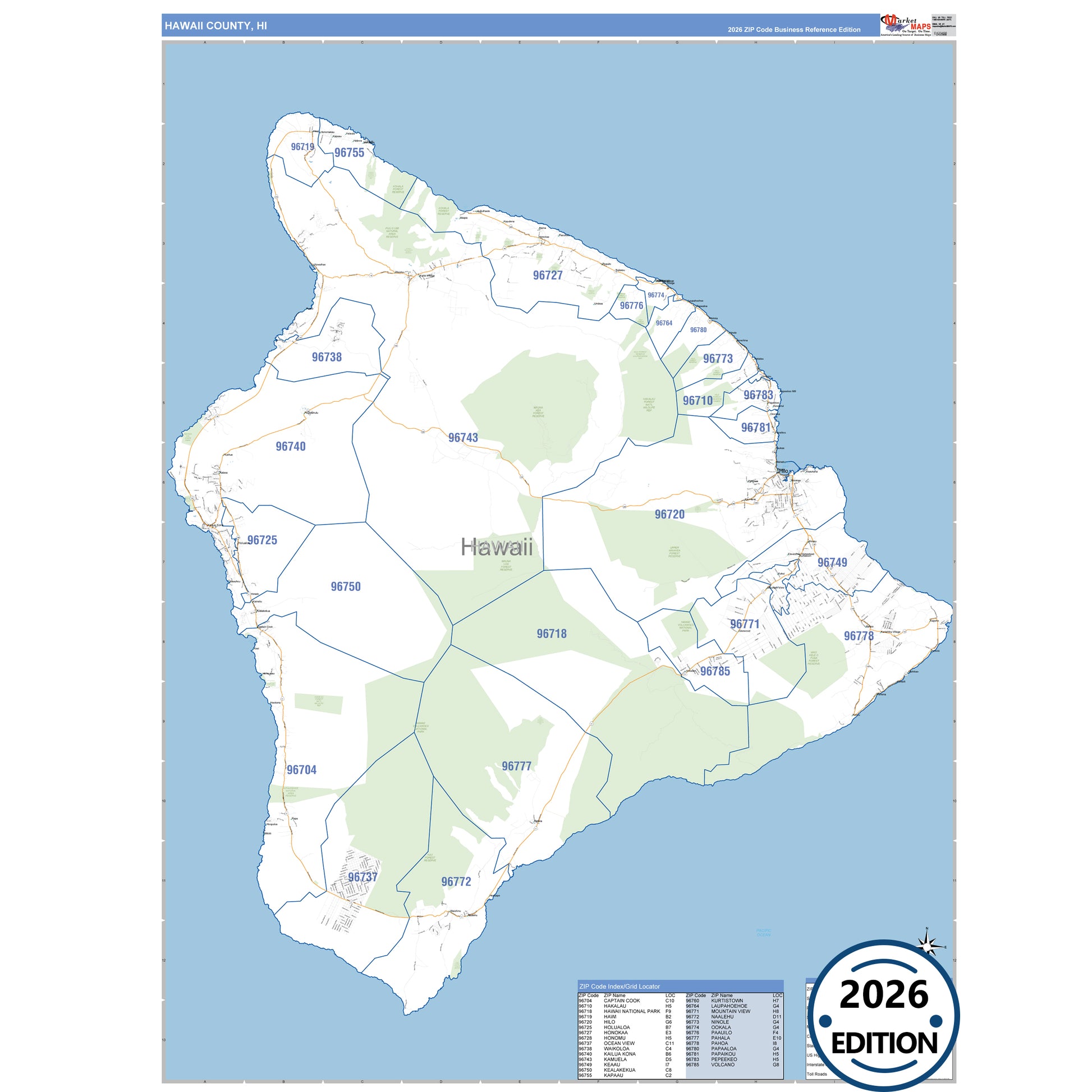 The Business Reference Style Hawaii County, HI is a detailed map that includes all towns, cities, major roadways, and highways. Available in multiple wall map sizes, perfect for home, school, office, or business display.