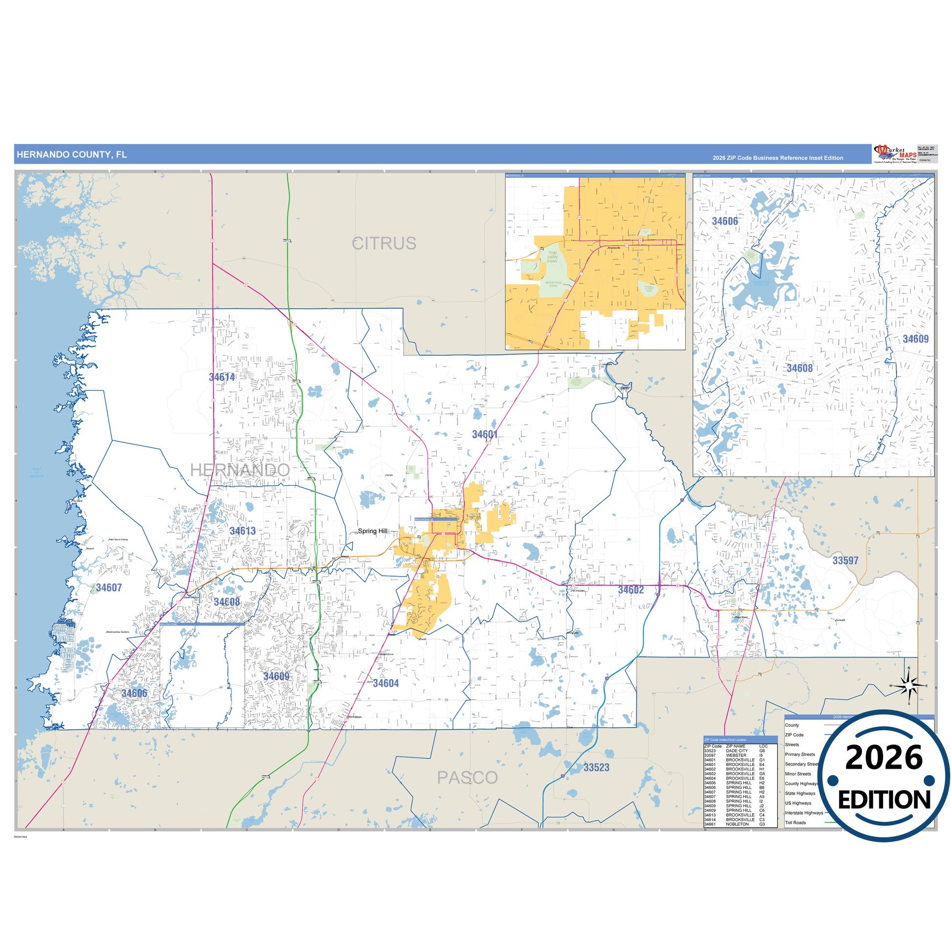 The Business Reference Style Hernando County, FL is a detailed map that includes all towns, cities, major roadways, and highways. Available in multiple wall map sizes, perfect for home, school, office, or business display.
