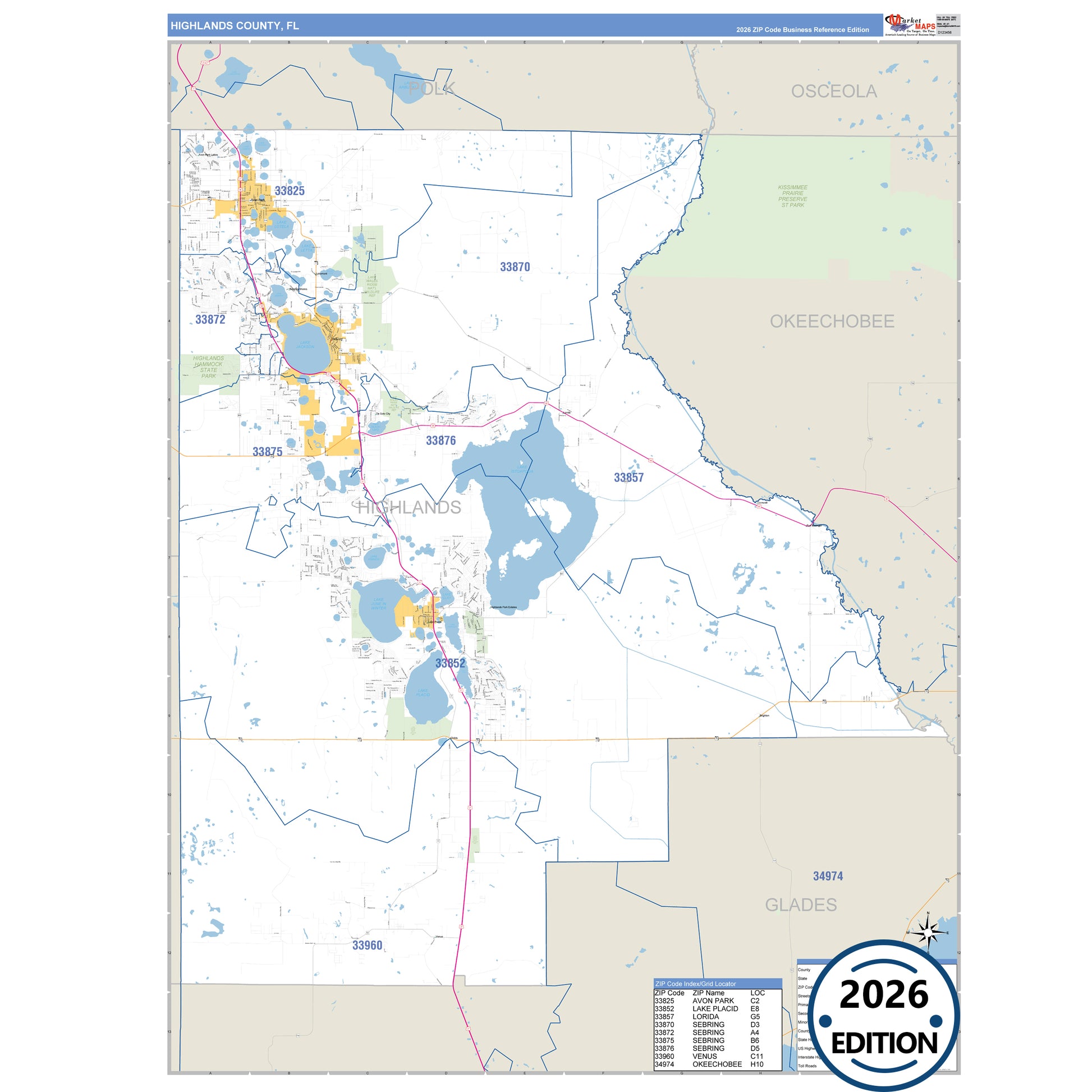 The Business Reference Style Highlands County, FL is a detailed map that includes all towns, cities, major roadways, and highways. Available in multiple wall map sizes, perfect for home, school, office, or business display.