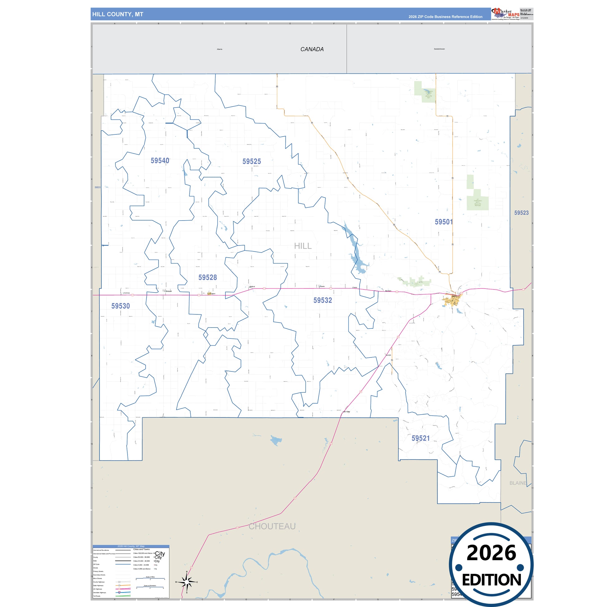 The Business Reference Style Hill County, MT is a detailed map that includes all towns, cities, major roadways, and highways. Available in multiple wall map sizes, perfect for home, school, office, or business display.