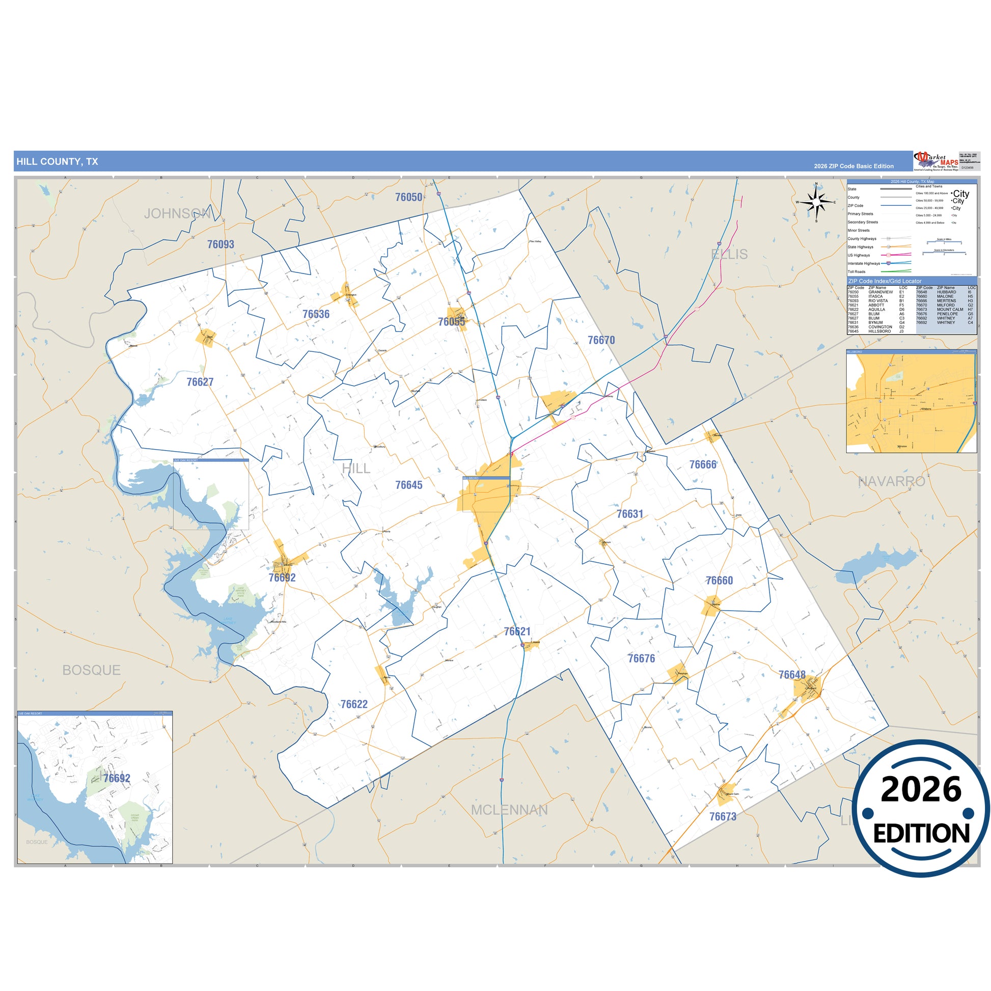 The Business Reference Style Hill County, TX is a detailed map that includes all towns, cities, major roadways, and highways. Available in multiple wall map sizes, perfect for home, school, office, or business display.