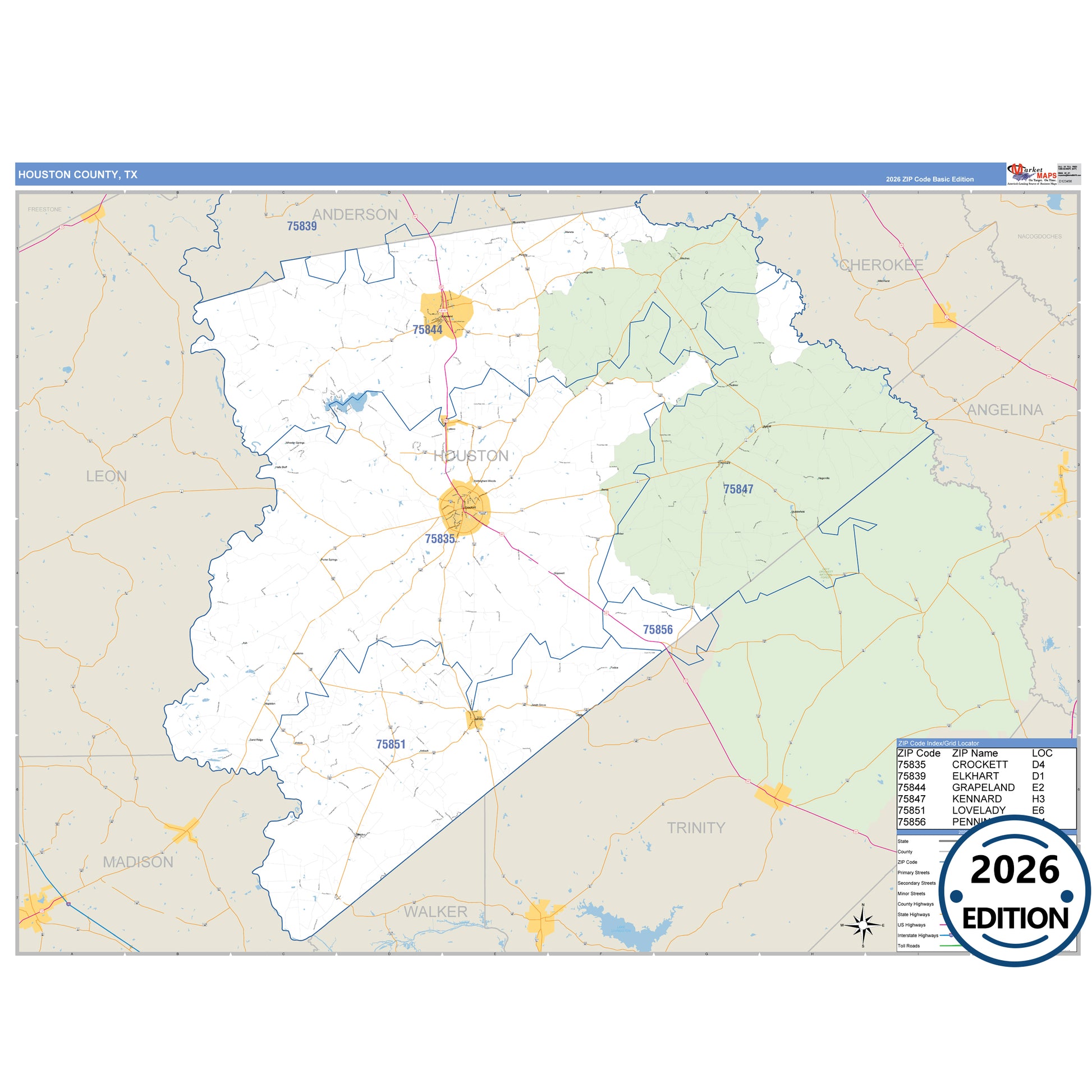 The Business Reference Style Houston County, TX is a detailed map that includes all towns, cities, major roadways, and highways. Available in multiple wall map sizes, perfect for home, school, office, or business display.